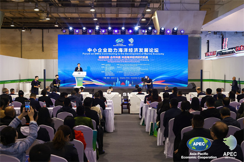 11月10日上午,由工业和信息化部和山东省人民政府主办、青岛市人民政府承办、青岛市海洋发展局参与协办的第十二届APEC中小企业技术交流暨展览会中小企业助力海洋经济发展论坛在青岛国际会展中心3号馆举行,来自APEC成员经济体、相关政府部门、商协会、高校院所、海洋领域优质中小企业、新闻媒体等约150位嘉宾齐聚一堂,共话海洋经济、共筑蓝色未来。
