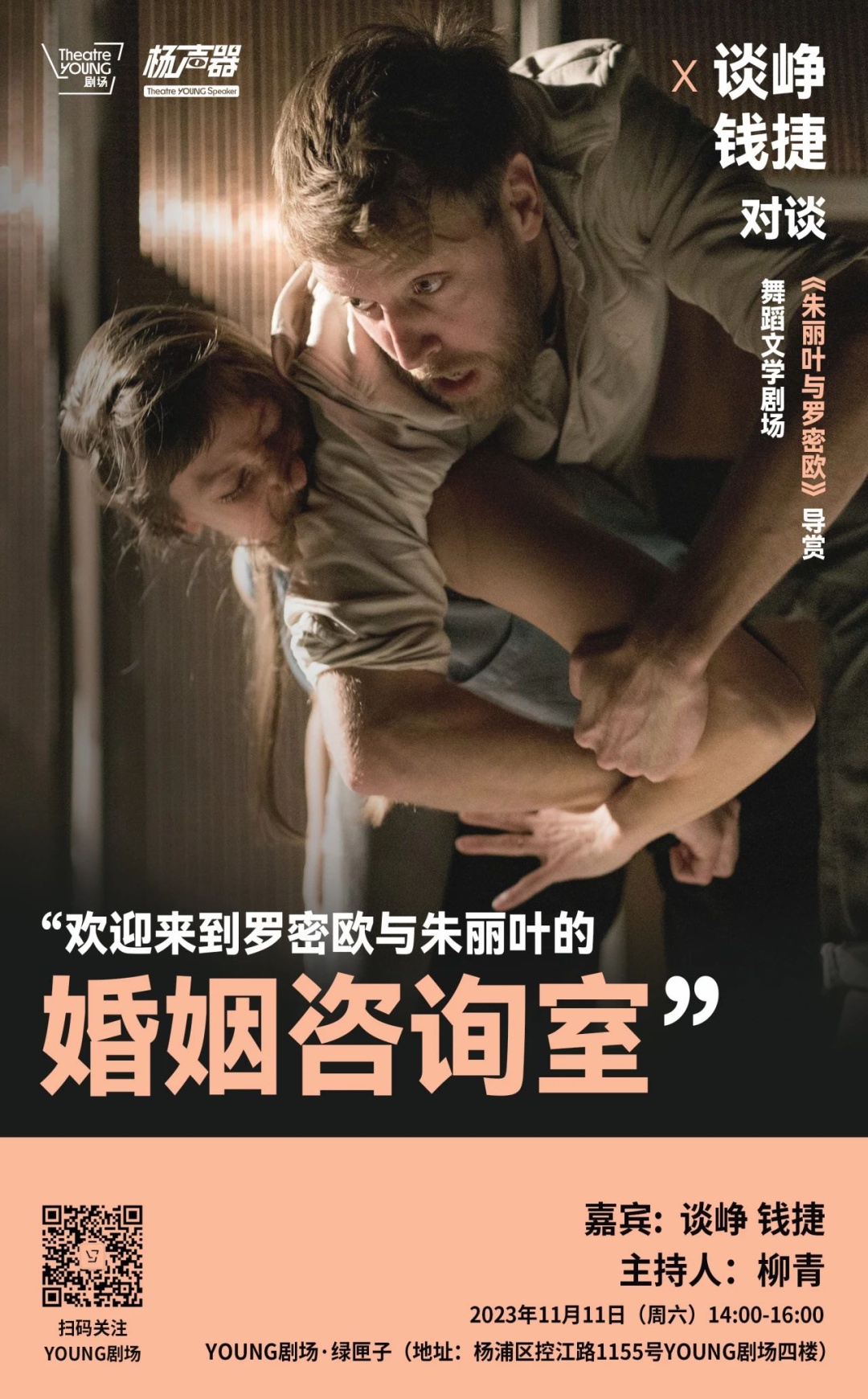 当人人喟叹的绝世悲剧爱情有了结果,他们的婚姻会如人们理想般幸福吗?11月11日,YOUNG剧场旗下的泛文艺播客“杨声器”将邀请复旦大学外国语言文学学院谈峥教授,复旦大学心理健康教育中心主任钱捷副教授来到YOUNG剧场绿匣子,聚焦这次《朱丽叶与罗密欧》的现代版改编进行一次深入的导赏和对谈活动,溯源莎翁原作中罗朱二人的故事背景和经历,分析剧目大胆的创作手法。