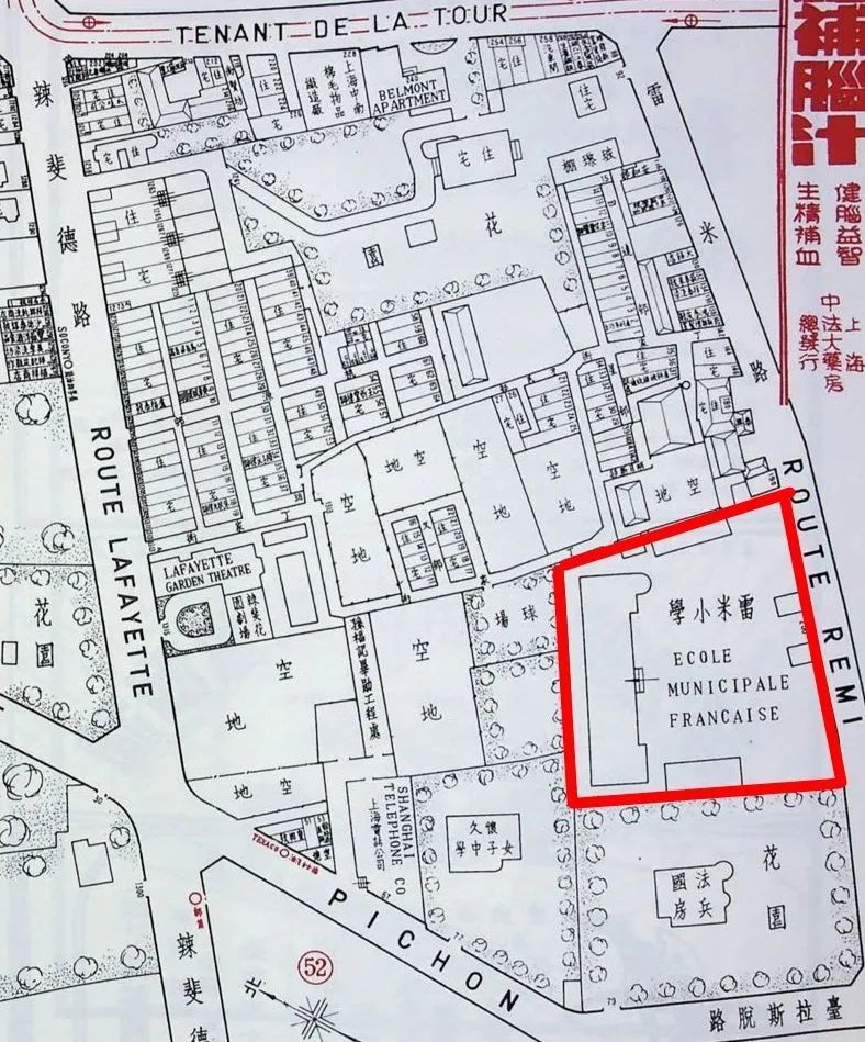 赖安洋行活跃于20世纪20至40年代初,是近代上海建筑史上举足轻重的建筑事务所之一。除了雷米小学之外,同时期还设计了位于淡水路上的萨坡赛小学(今黄浦区卢湾一中心小学的前身)。雷米小学位置图,来源:《上海市行号路图录》1940年