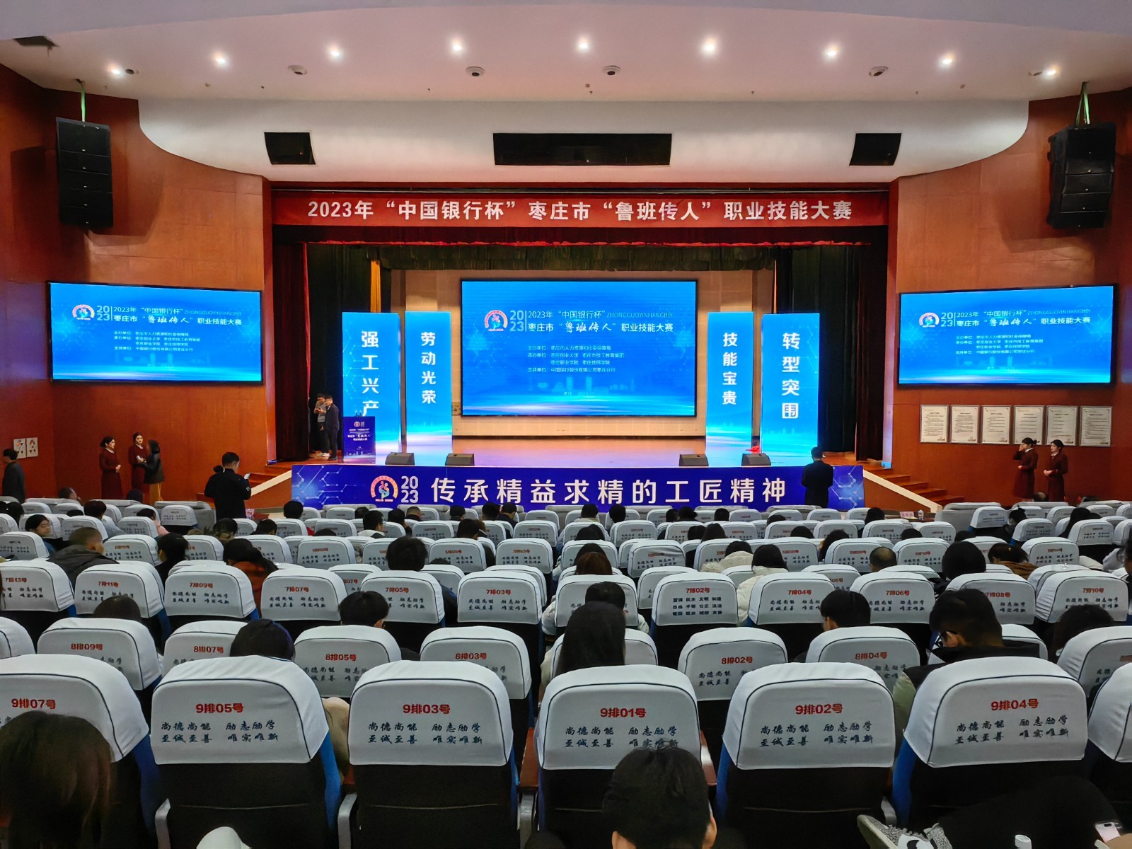 为大力弘扬劳模精神、劳动精神、工匠精神,积极营造“劳动光荣、技能宝贵、创造伟大”的社会风尚,11月11日上午,由枣庄市人力资源社会保障局主办,枣庄职业学院、枣庄技师学院联合枣庄创业大学、枣庄市技工教育集团承办的2023年“中国银行杯”枣庄市“鲁班传人”职业技能竞赛在枣庄职业学院举行开幕式,“鲁班传人”职业技能竞赛正式开赛。
