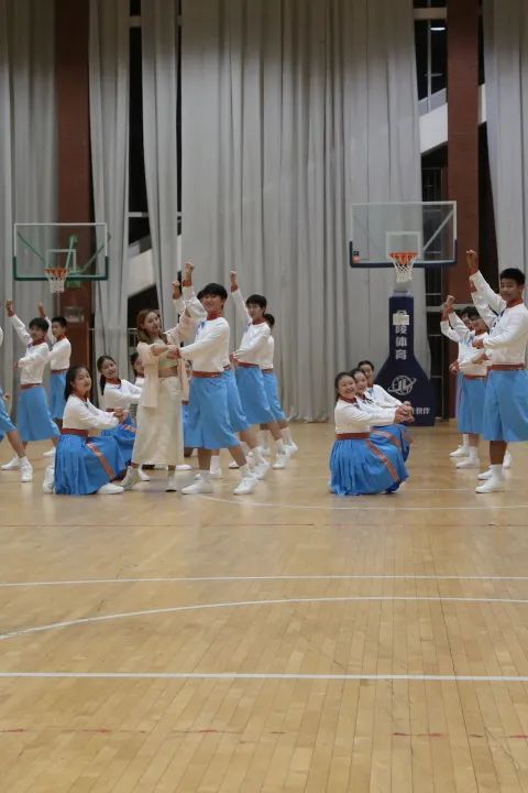 上海市松江一中“云间舞韵”舞蹈团及热爱跳舞的学生组成了16男16女的集体舞团队,在本次集体舞展示活动中以《我的未来不是梦》和《蒙古欢腾》为展示作品。学生通过舞蹈展示出团队精神和个人技能,同时充分体现了学校艺术文化的实力!