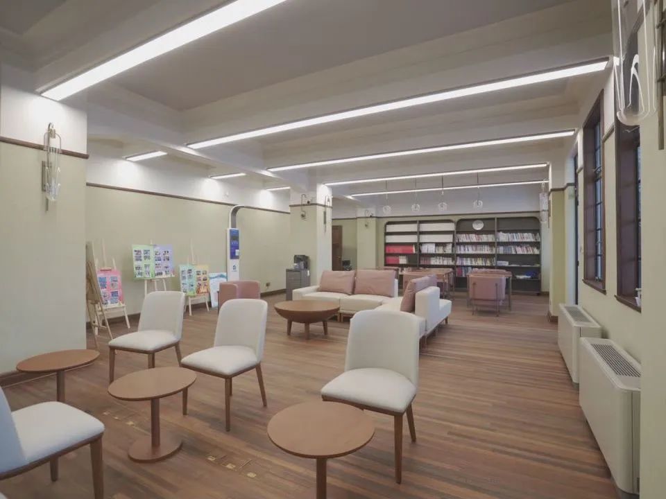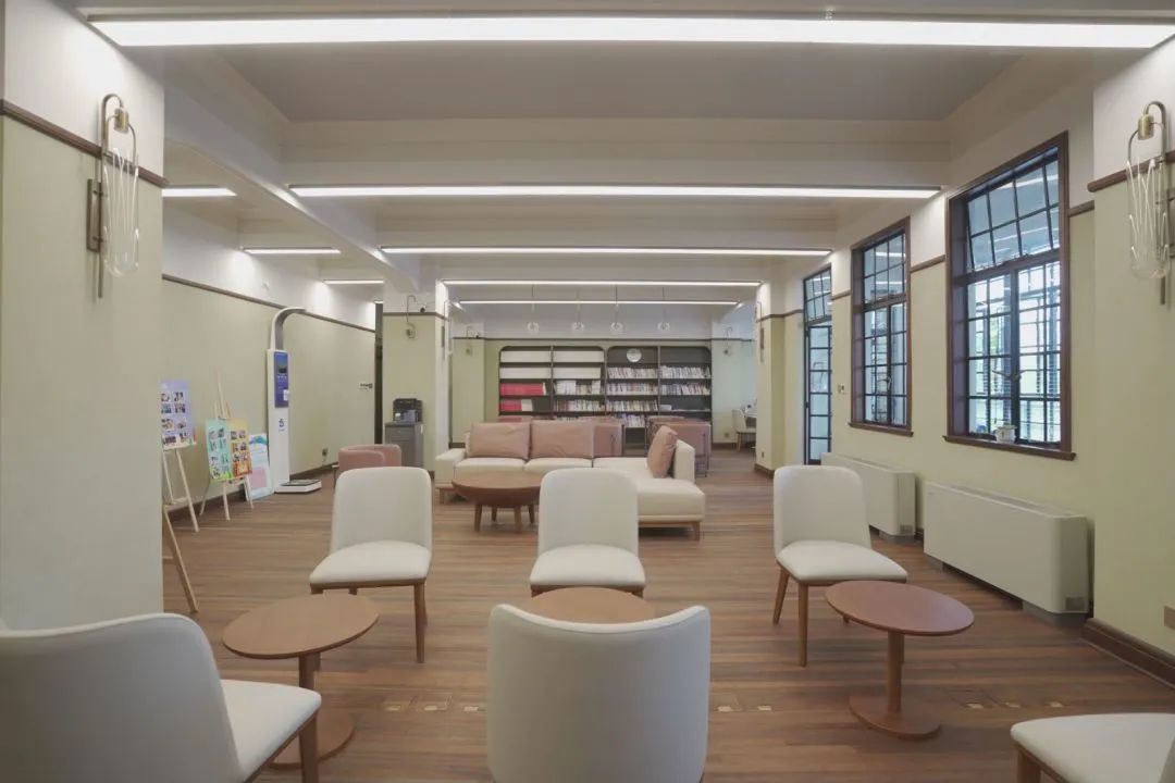 建设人民城市,要把最好的资源留给人民。以“虹馨工程”项目建设为契机,北外滩街道主动让渡居委办公空间,通过“修旧如旧”的更新改造,服务、治理、文化等元素的叠加融合,在河滨大楼打造了集议事、会客、办公、休闲等场景于一体的社区综合体——河滨会客厅。