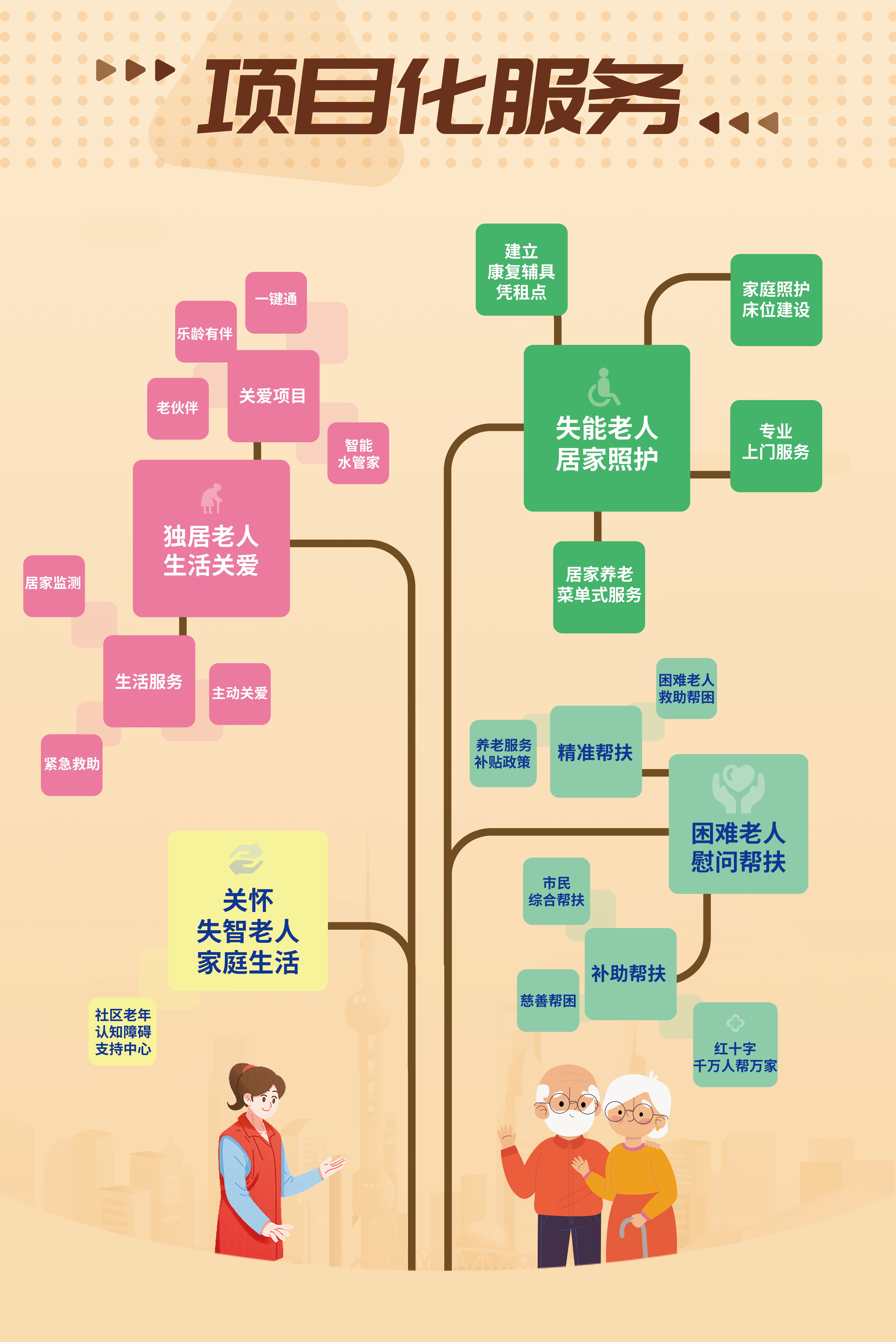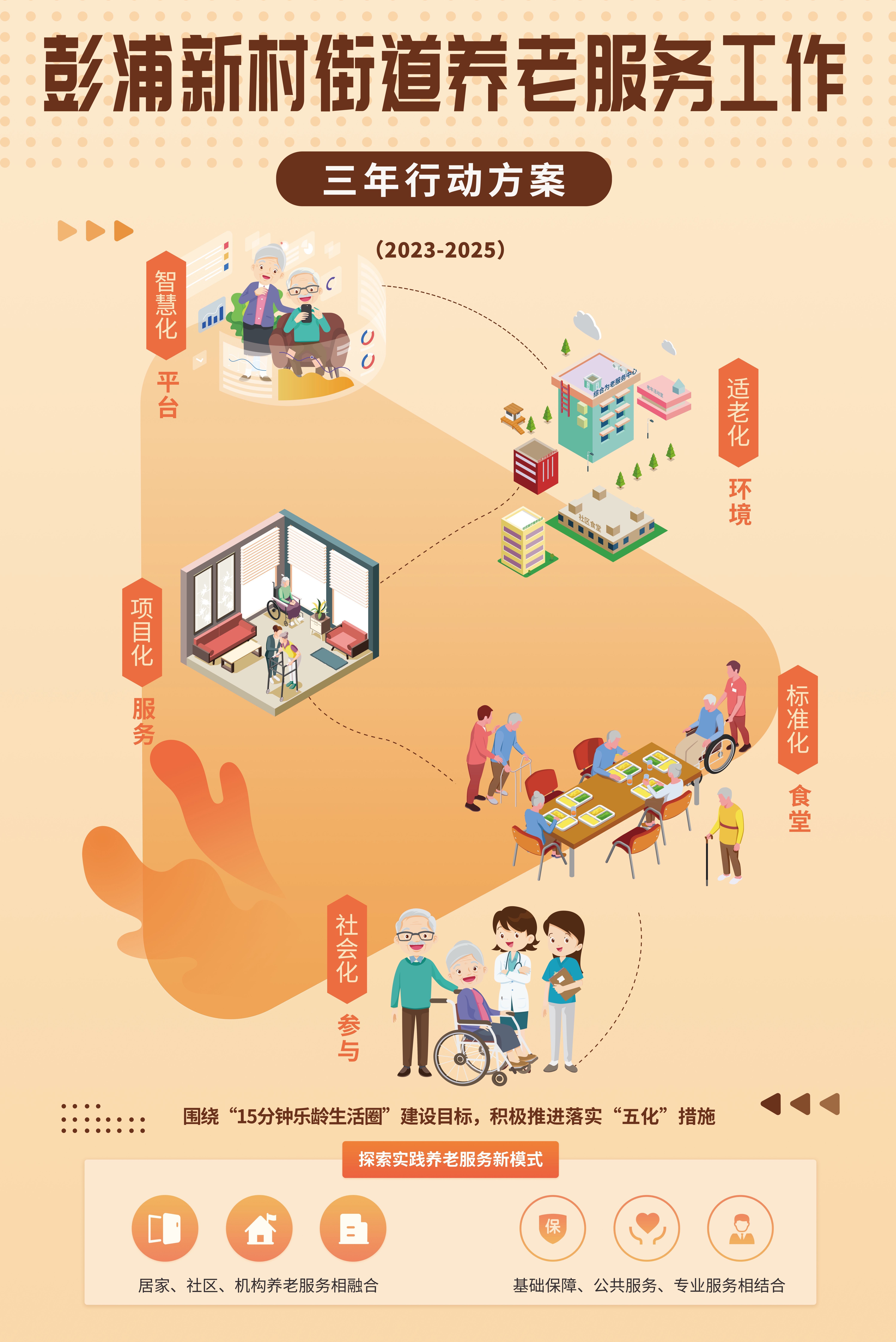 日前,彭浦新村街道聚焦进一步优化社区养老服务“15分钟服务圈”,正式发布《彭浦新村街道养老服务工作三年行动方案(2023年—2025年)》,将通过构建起横向居家、社区、机构相融合,纵向基础保障、公共服务、专业服务相结合的“三横三纵”社区养老服务新体系,最大化满足老年群体社区养老服务需求。
