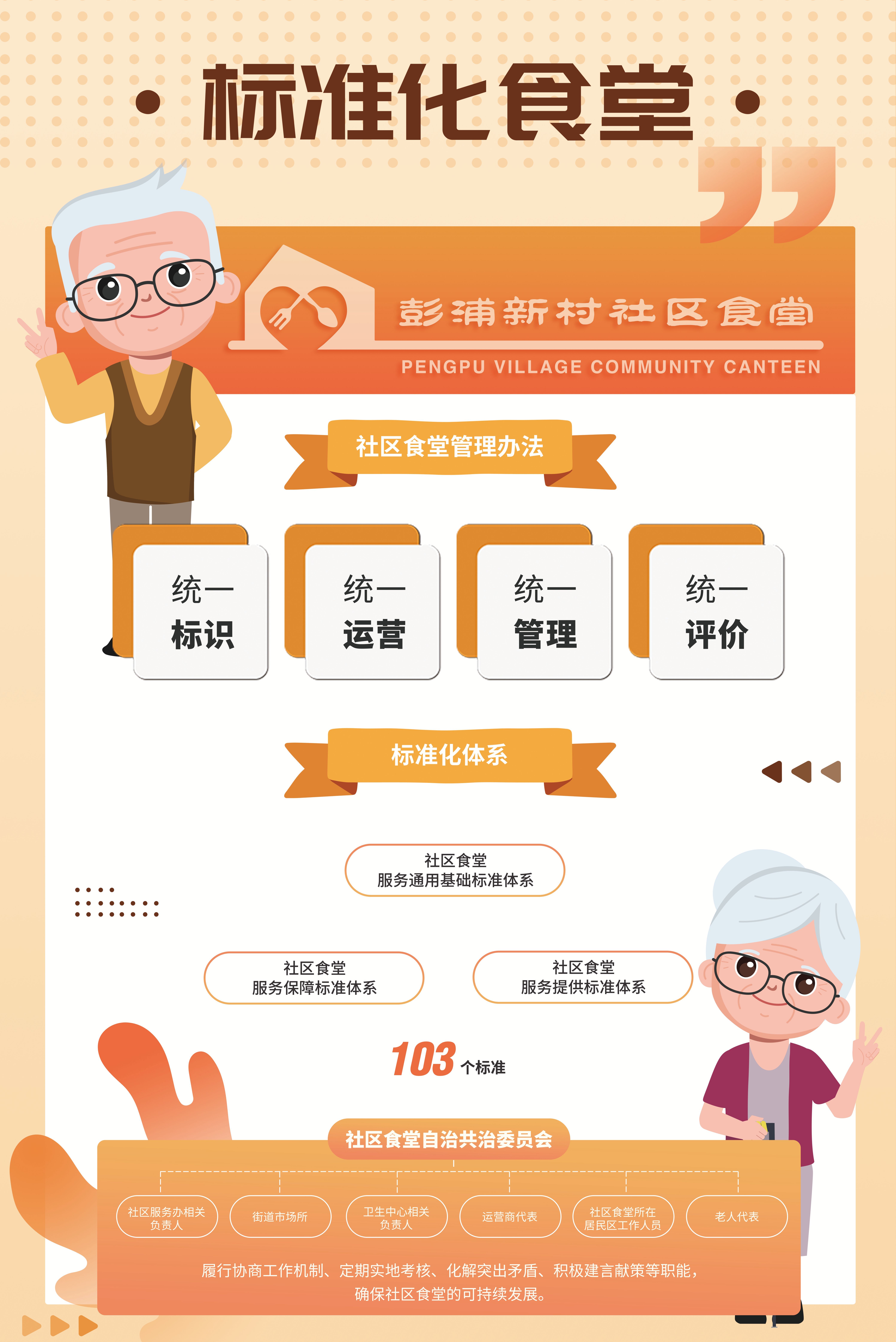 根据方案,街道将在现有公共服务点位的基础上,进一步优化完善嵌入式养老服务设施布局,包括建设第四家综合为老服务中心,筹建医养综合体,新建第二家街道社区卫生服务中心等,实现养老服务设施可达、服务可及以及医养、康养服务功能的互动融合。适老化理念也将从居民“小家”延伸至公共空间,通过微更新、微改造的方式,让老年人生活得更安全、更舒适、更有品质。包括103项标准的彭浦新村社区食堂标准化体系2.0版,也将通过更加规范和精细化的标准的分类和内容,让老人们能够吃得安心、吃得健康。街道同时还将在实现社区食堂“一卡通”的基础上,把“彭福卡”“敬老卡”“社保卡”的应用场景逐步向更多服务载体拓展,老年人持卡可在认证合作的服务点位,以优惠的价格购买商品和享受服务。