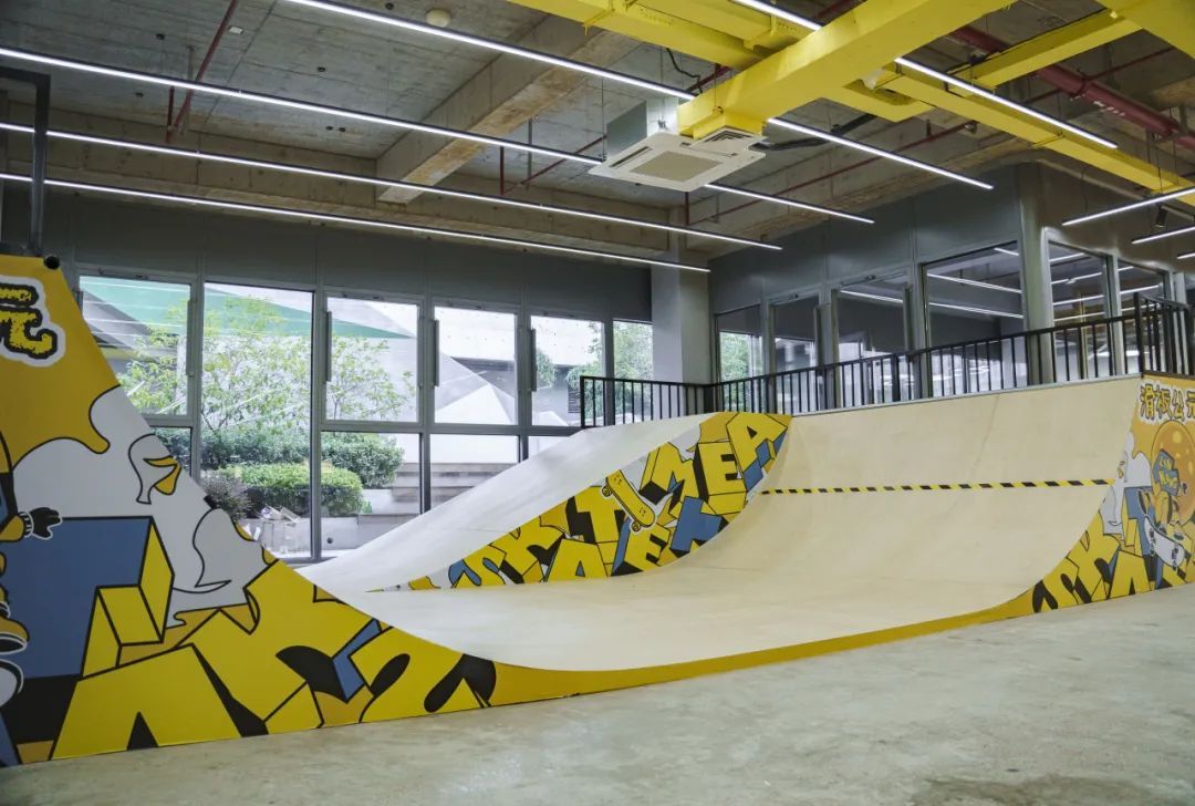 滑板公元青少年滑板俱乐部临空店拥有丰富的道具规划和场地功能,包括不同高度的mini ramp(小型坡道)、街式区域以及深受滑板爱好者喜爱的海绵池,可满足各个阶段的教学需求。此外,超长木质阶梯可作为平日学员和家长的休息区域,同时也是观赛和社交的理想场所。