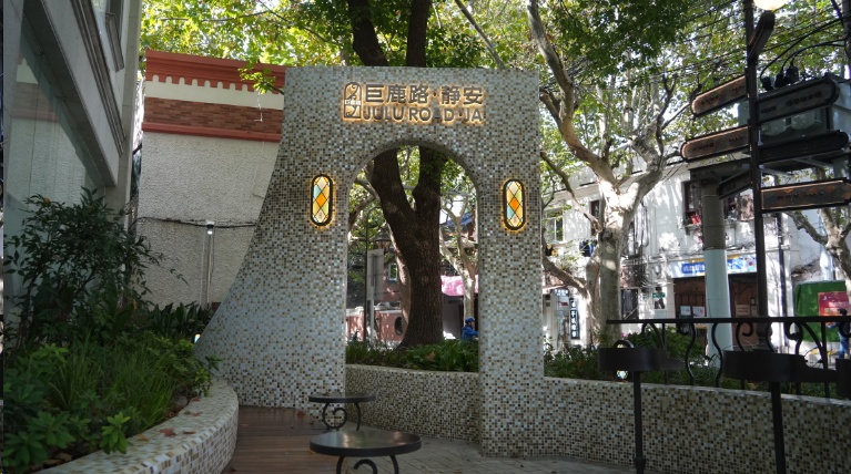 午后的巨鹿路富民路路口,阳光透过树叶的罅隙,洒落一地的斑驳,街角的巨鹿游园里坐着几位捧着咖啡在此休憩聊天的年轻白领,秋风、暖阳、绿树、落叶、座椅上复古的马赛克瓷砖……街角的小游园俨然成为了一个24小时开放的街角咖啡馆。
