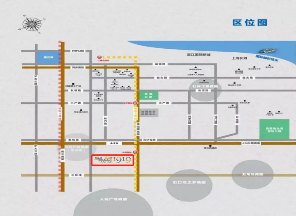 园区西临吴淞大桥,南临蕴藻浜、黄浦江交汇处,周边交通便捷,北面紧邻外环高架及轨道交通3号线,东部紧邻逸仙高架,毗邻吴淞路渡口。