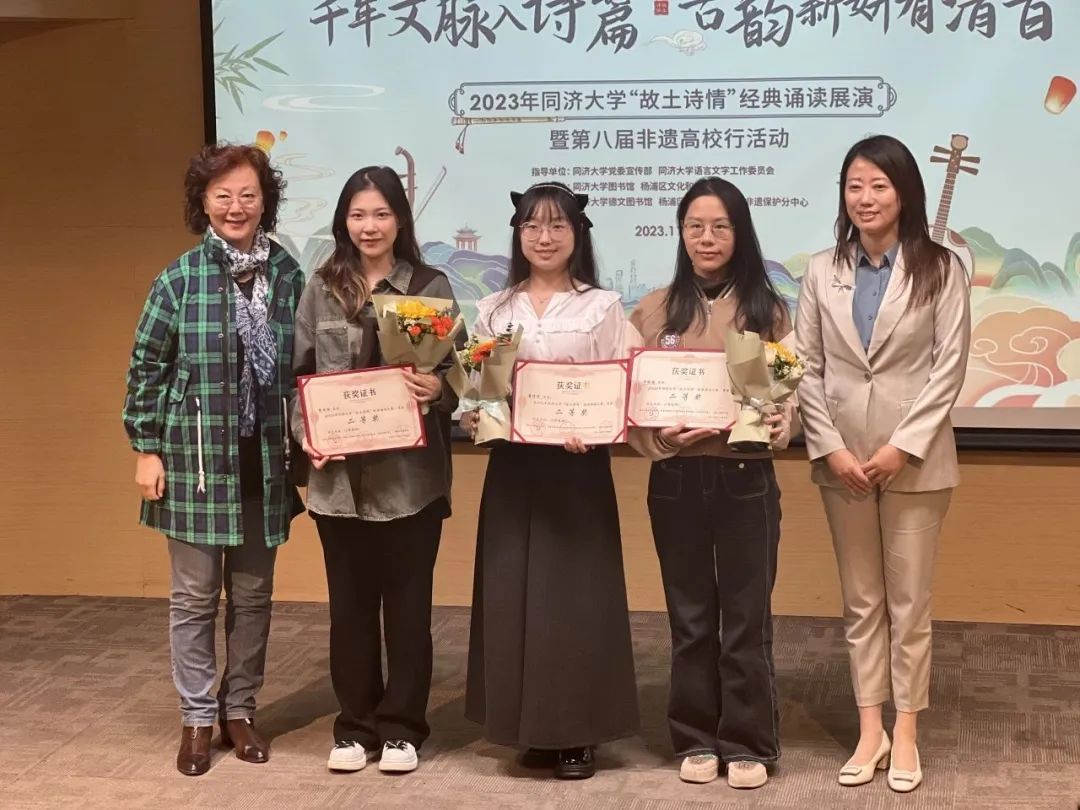 此外,活动还为同济大学“故土诗情”经典诵读活动获奖学生颁发了证书,鼓励大家继续坚定文化自信,坚持传承好中华优秀传统文化,推动中国文化“走出去”。