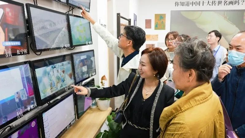 学习间隙,老年学习团队还参观了上海开放大学中原校区的“四馆两厅”,包括智慧书画馆、智慧茶艺馆、智慧健康馆、智慧生活馆、银发演e厅和银发展示厅。