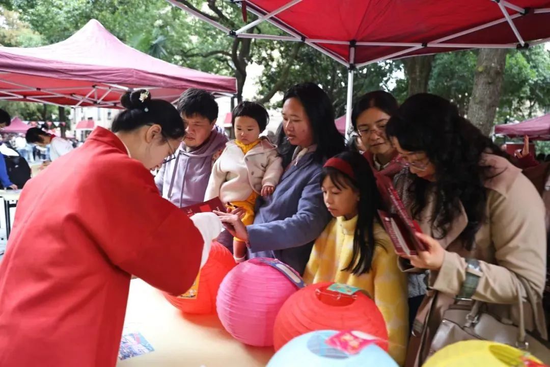 “匡时社彩”站点,校园多家社团一显身手,带来精彩的打卡体验。绘画社团的摊位上,同学们手执画笔,在空白kt板上畅心所欲地勾勒出各自眼中的校园;在汉服社的摊位上,同学认真思考,聚精会神地猜灯谜;在计算机协会摊位前,同学们纷纷用AI作诗,感叹时代发展之快……丰富的社团活动,热闹的游戏场面,尽显上财青年们的智慧与活力。