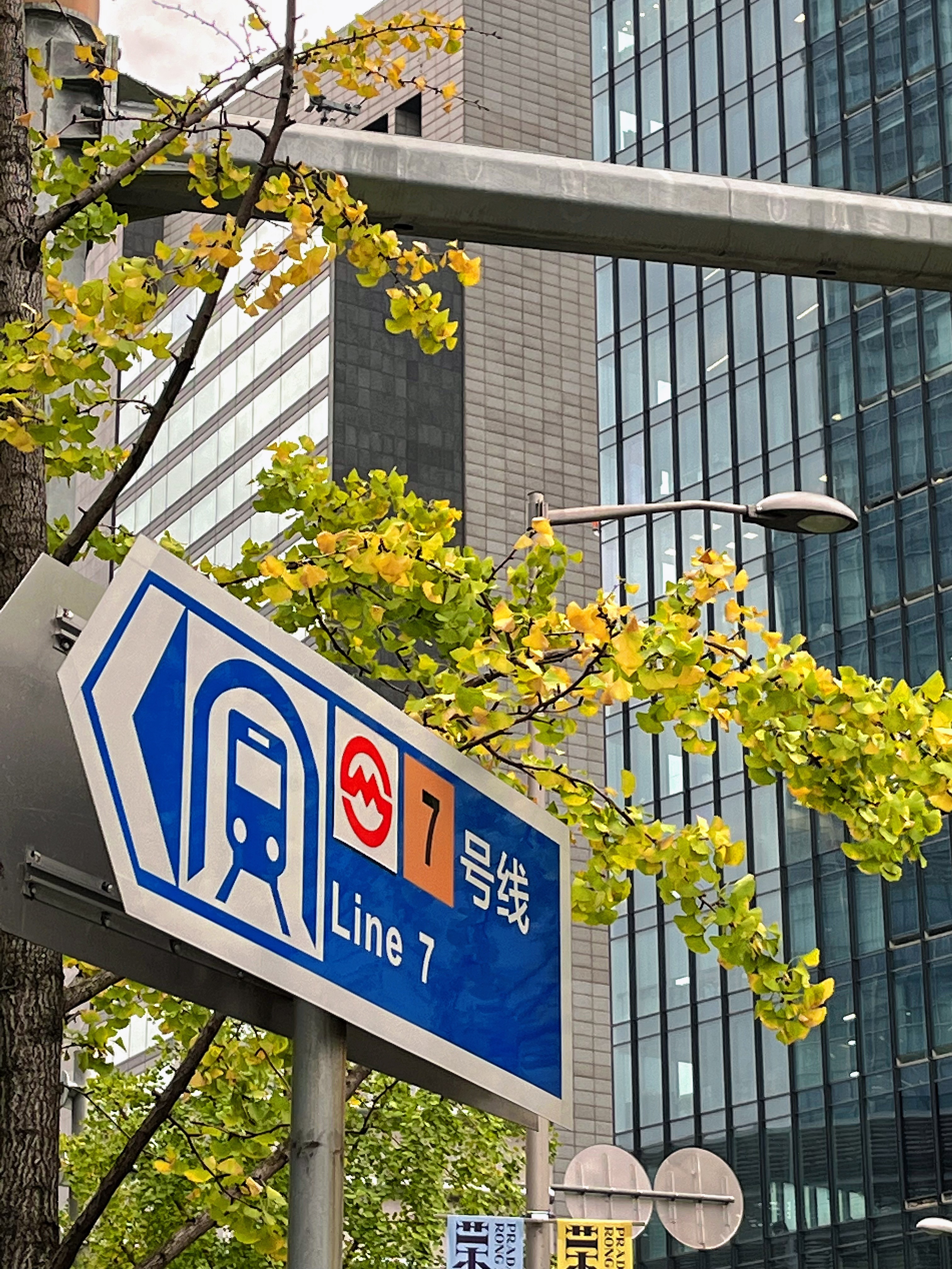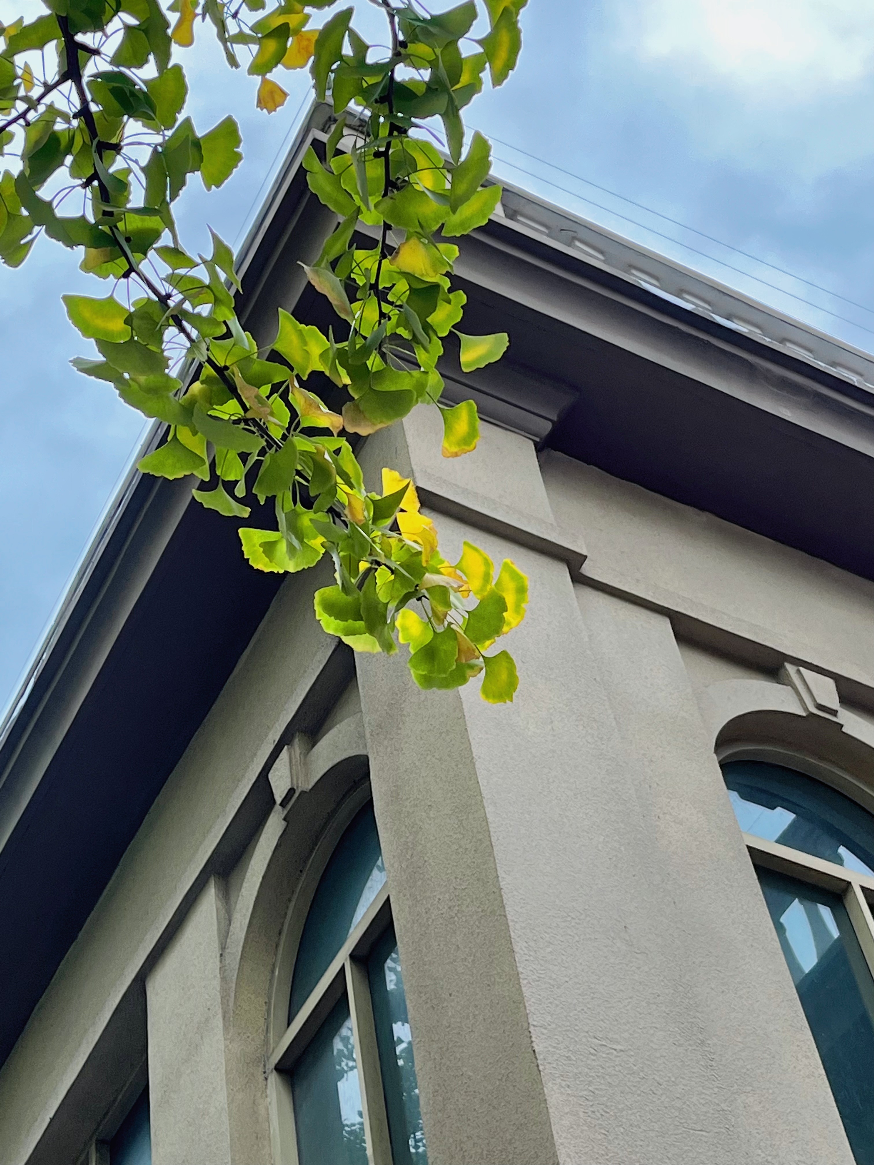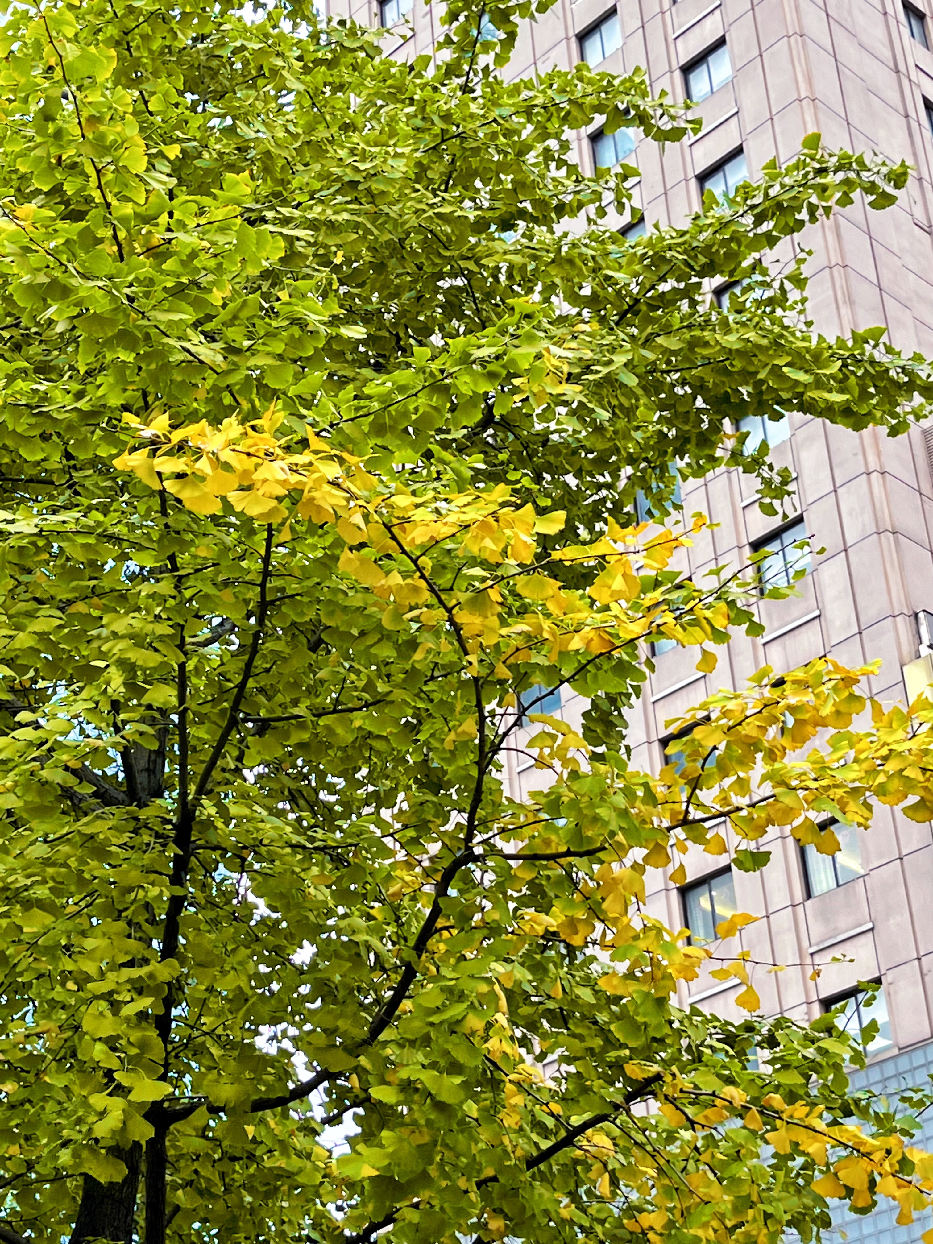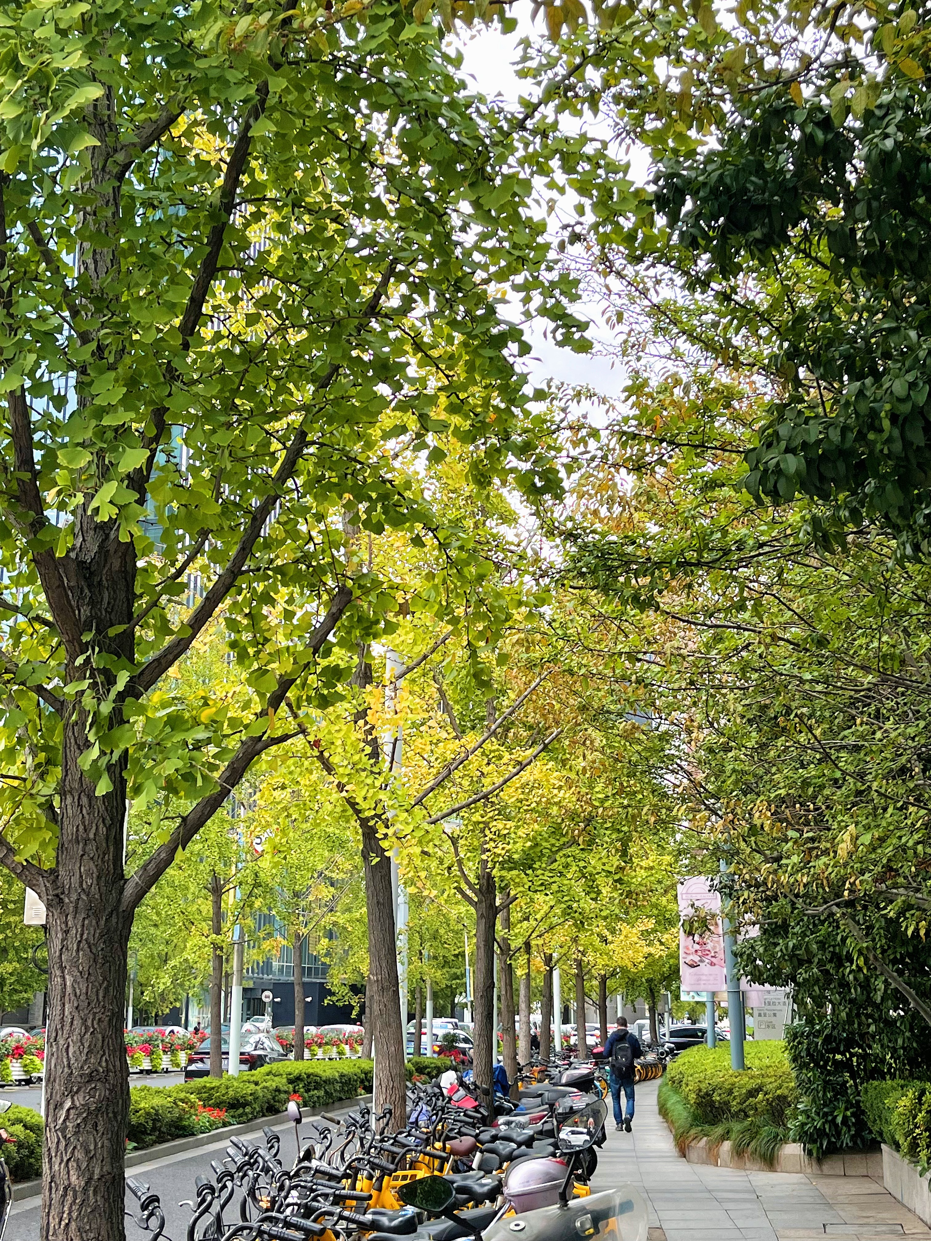 现在常德路上的银杏已经有一些“显眼包”整棵树变成金黄,更多的是黄绿过渡的渐变色。
