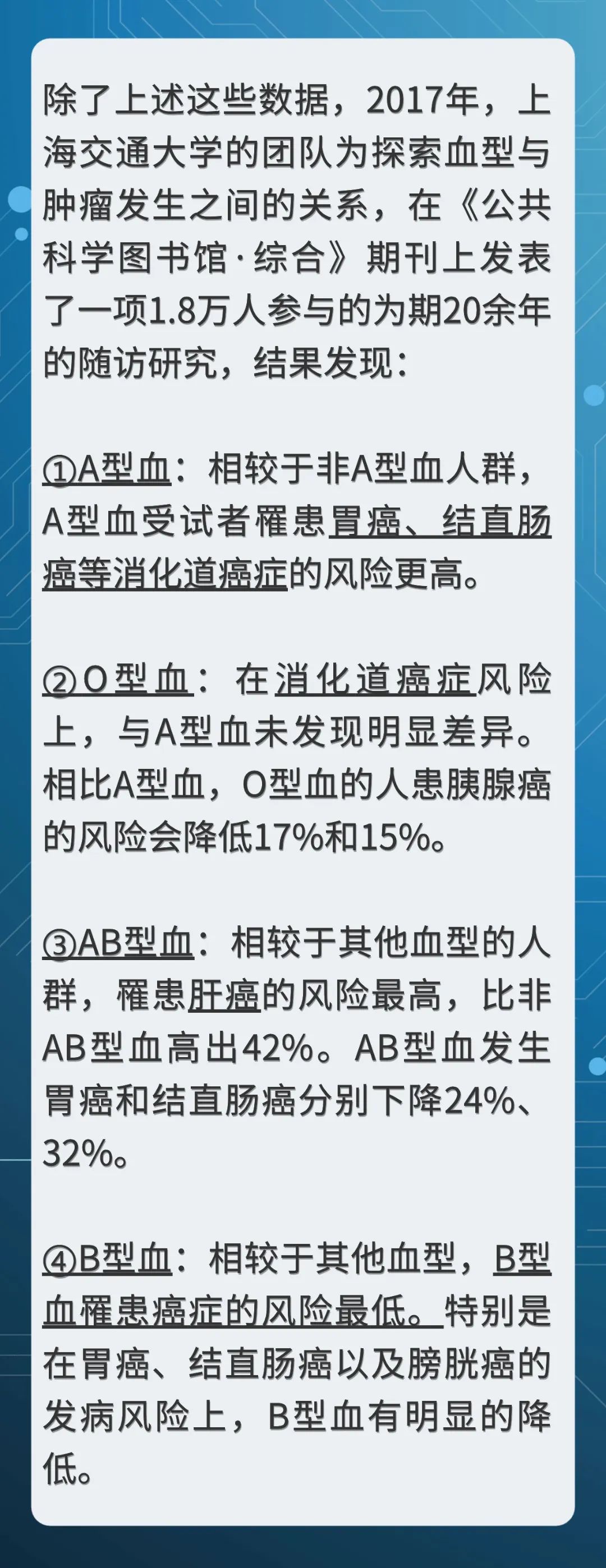 目前已有多项研究发现,血型跟癌症、心脑血管疾病、糖尿病、消化性溃疡等多种疾病的发生存在一定的关系!