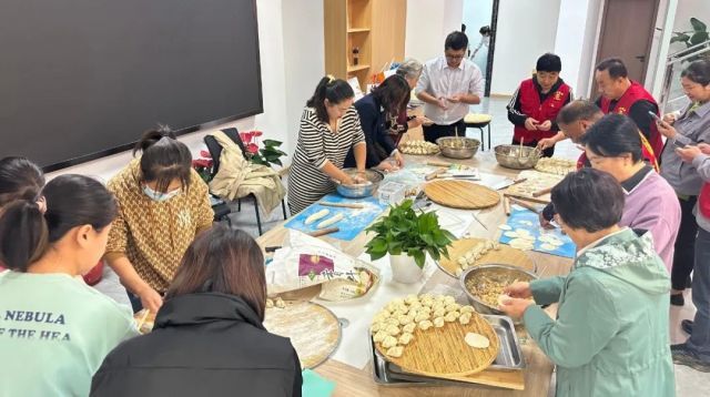 活动过程中,大家分工协作,配合默契,和面、调馅、擀皮,不一会儿,一个个薄皮大馅的饺子摆满了桌子,充满欢声笑语。包完饺子,部分社区老人和社区志愿者开展现场书画创作、观看红色电影、举行“美德信用”座谈会等丰富多彩的活动,营造了浓厚的欢乐氛围。