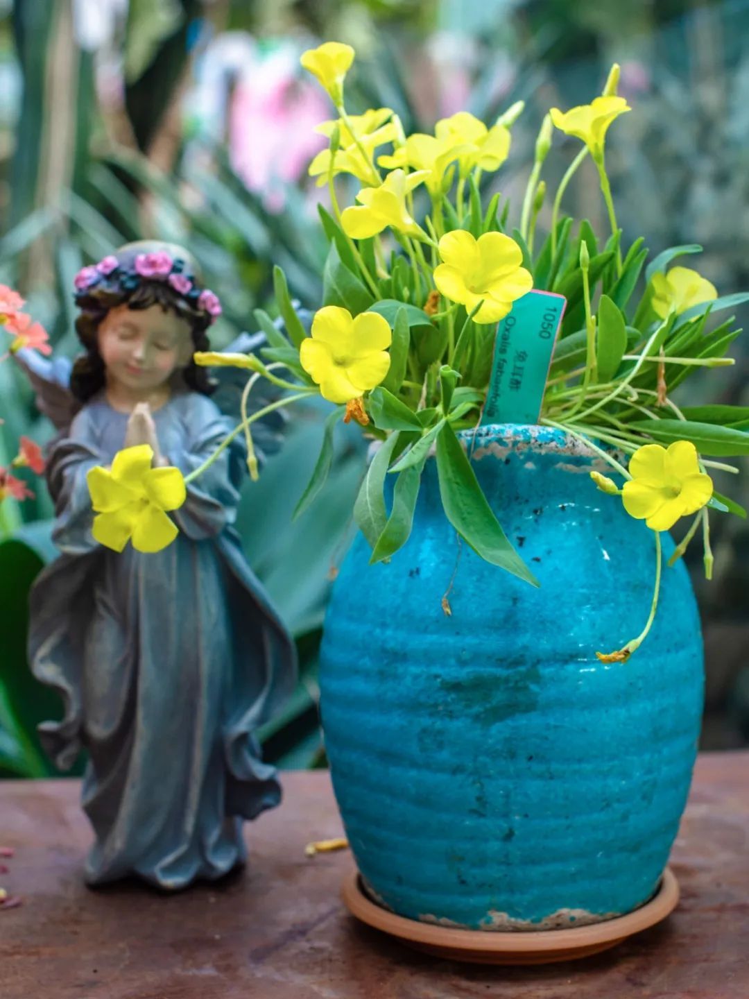 此次酢浆草品种观赏季的展览形式主要以单体盆栽展示为主,既能满足游客近距离观赏酢浆草的需求,又为酢浆草的家庭应用提供参考。酢浆草是喜强光照、喜温暖的一类植物,所以推荐赏花的最佳时间为晴天的11:00-15:00。