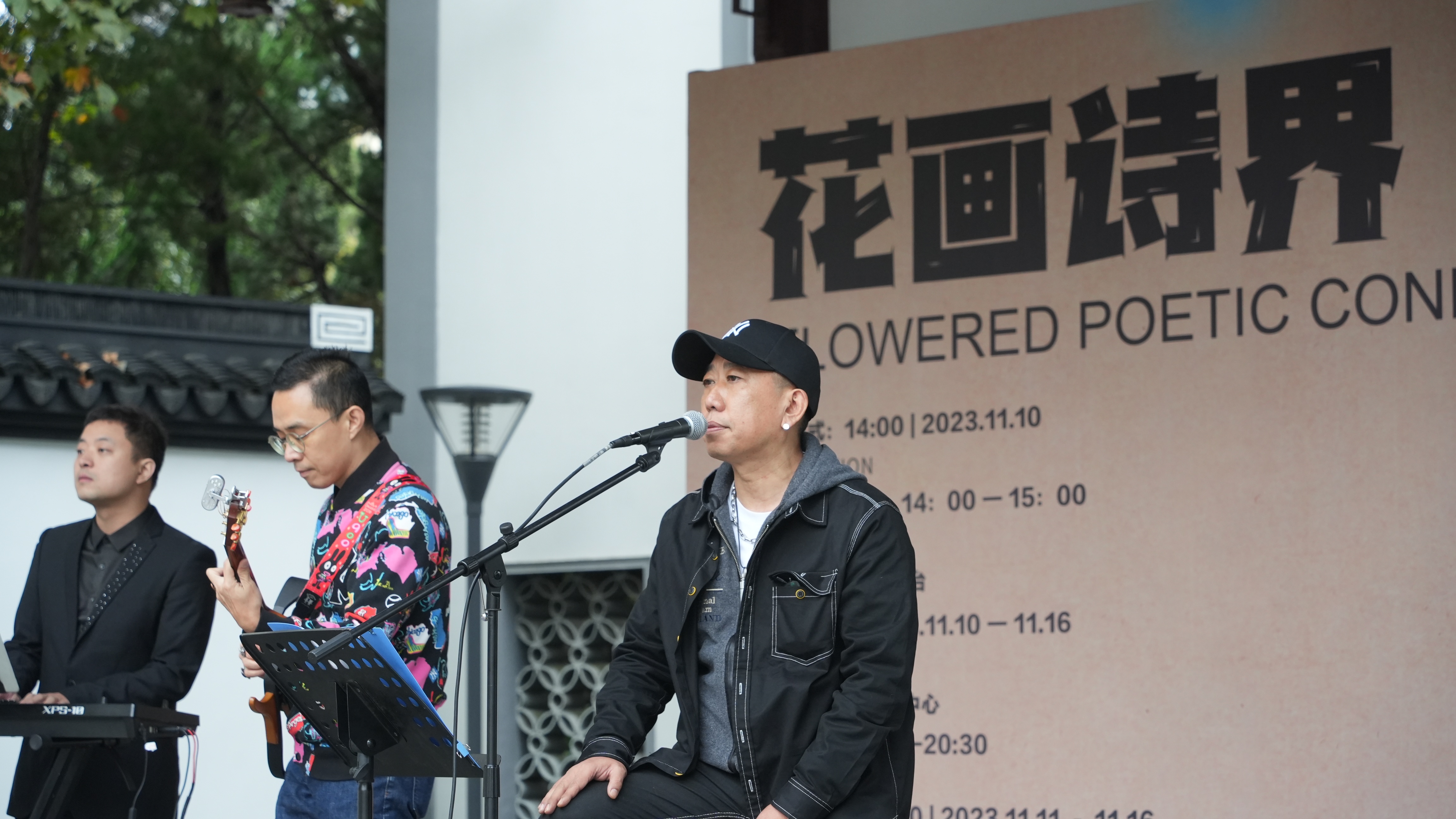 活动现场,由国内顶级吉他手向嵬、爵士键盘手陈嘉骏、流行乐队鼓手周德人等多位专业音乐人组成的演唱乐队,以闸北公园古戏台为舞台,为市民们带来了多首经典的中外流行金曲。