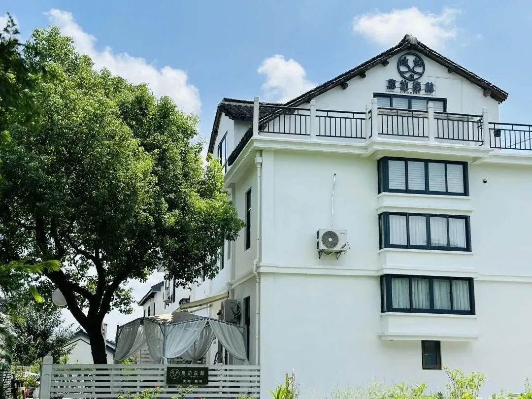 鹿边森林民宿坐落于大莲湖畔的青西郊野公园内,白墙黛瓦的建筑,掩映在绿树浓荫之间,如在诗画之中。一楼后院区域,配置了休闲户外场所,白天可以户外野餐烧烤轰趴,晚上可以户外露天电影。公共区域配置了近几年较风靡的咖啡机及水吧,让客人在闲暇之余能品尝到香醇的咖啡和可口的饮料。