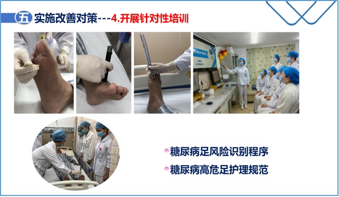 整改措施的落实是规避再次发生此类不良事件的有效举措。针对该不良事件,护理团队基于循证的基础落实了三条对策:一是开展多元化足部护理教育提高患者足部护理知识知晓率;二是设计糖尿足筛查用具提高糖尿病高危足风险评估的准确率;三是制定基于柯氏模型的足部护理干预方案提高足部护理教育达标率,整改过程注重循证决策、切合实际、突出实效。