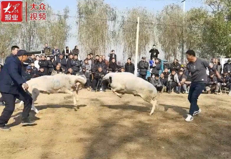 斗羊,民间俗称抵羊,是鲁西南地区的一种民间风俗。11月12日,鄄城县什集镇在察庄村举办斗羊大赛,众多斗羊爱好者齐聚一堂,上演了一场精彩的羊羊大战,参赛羊数量100余只,吸引了近500名群众前来观看。