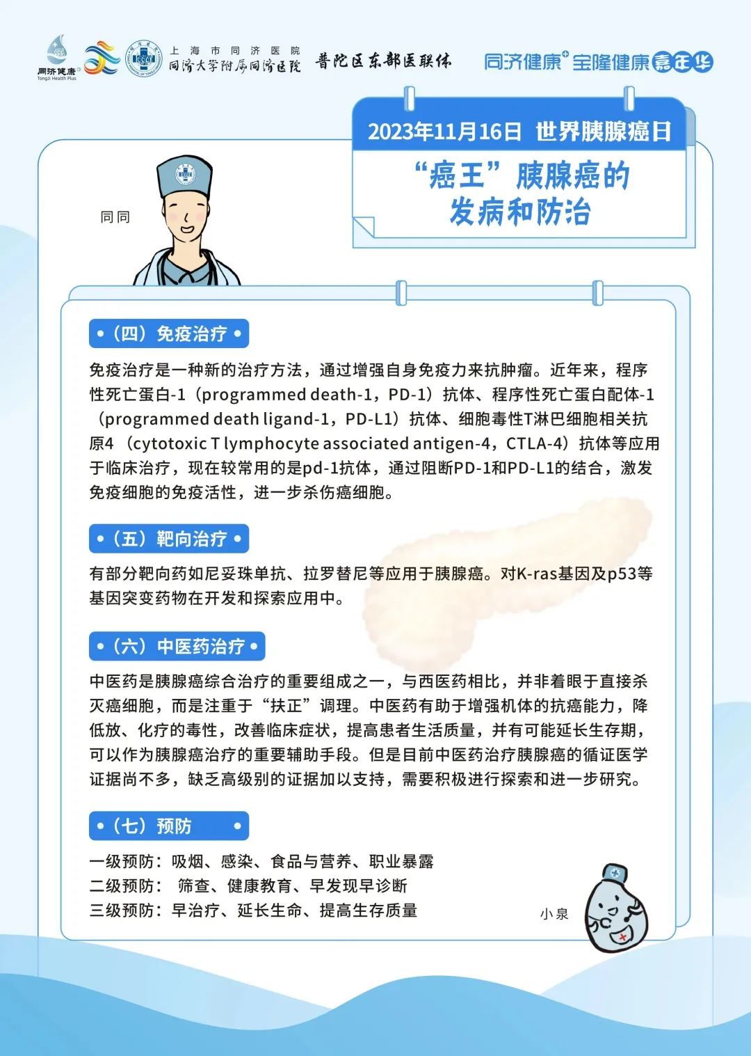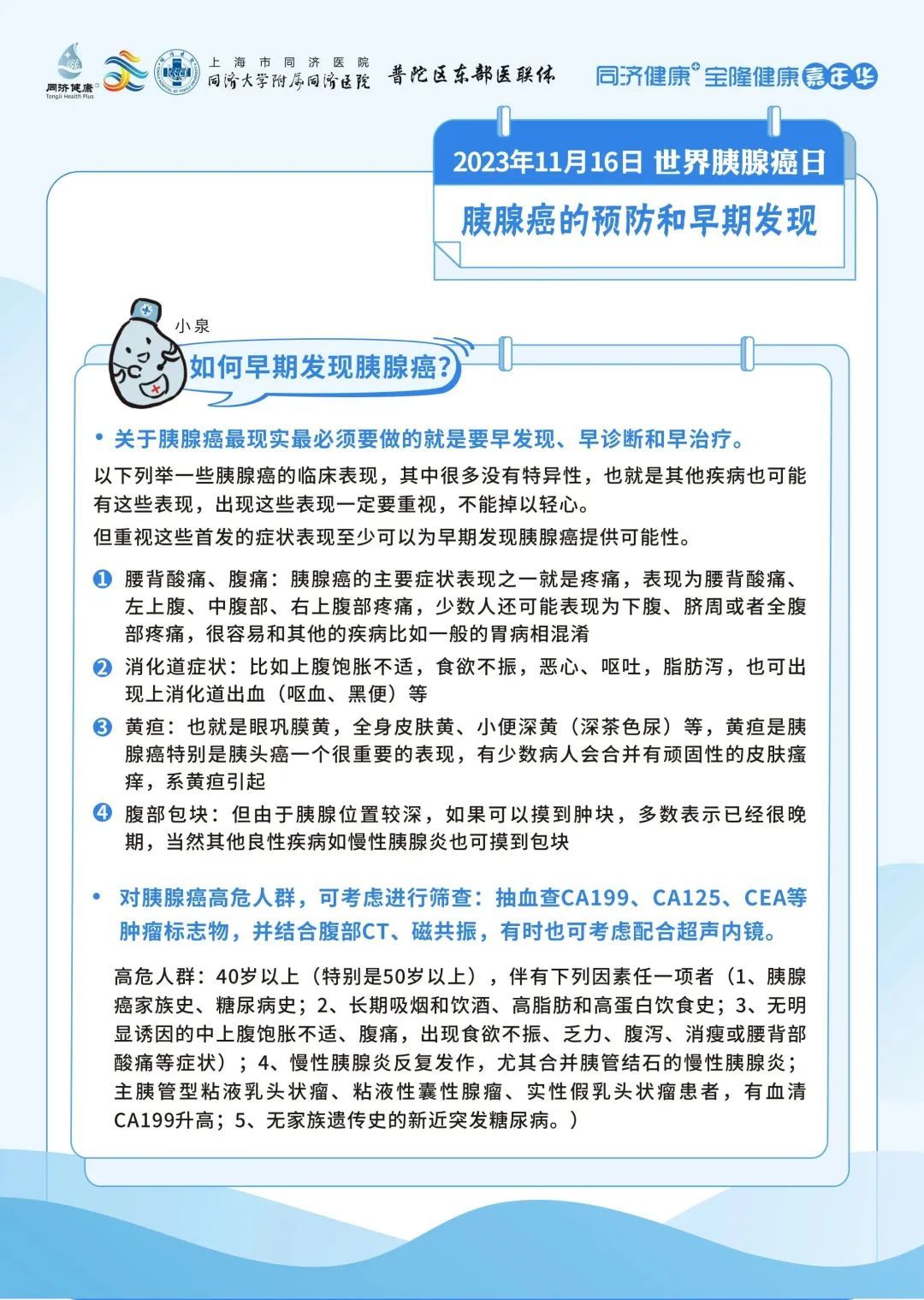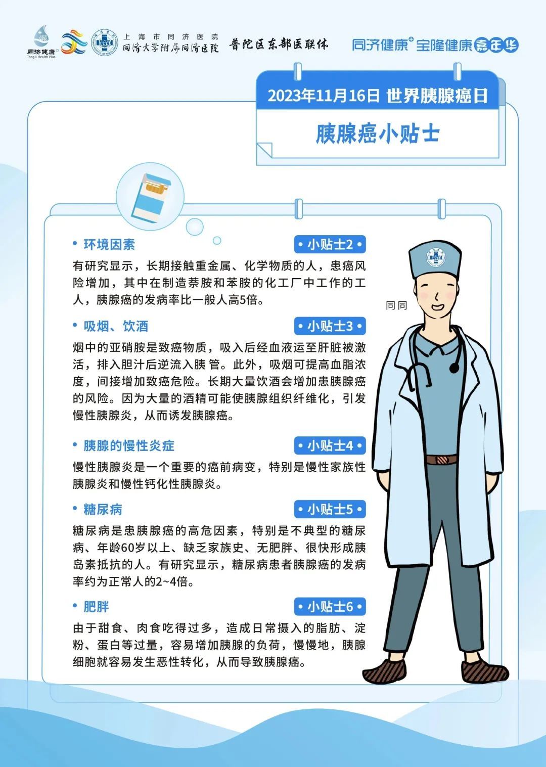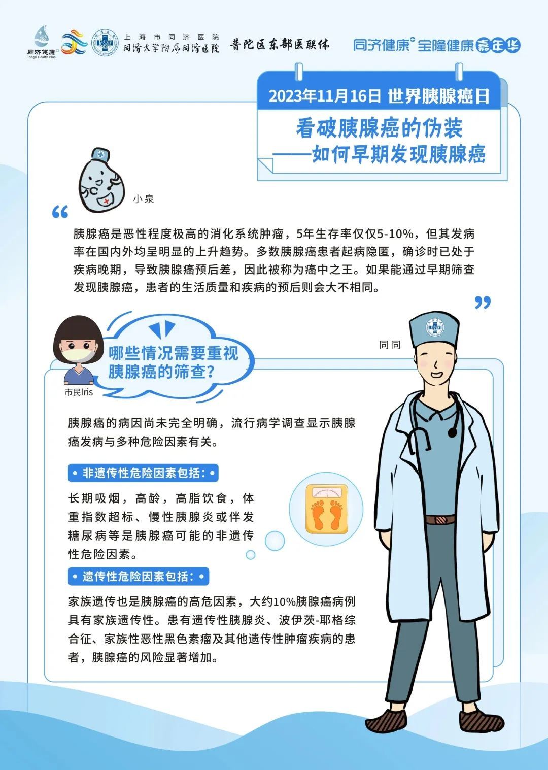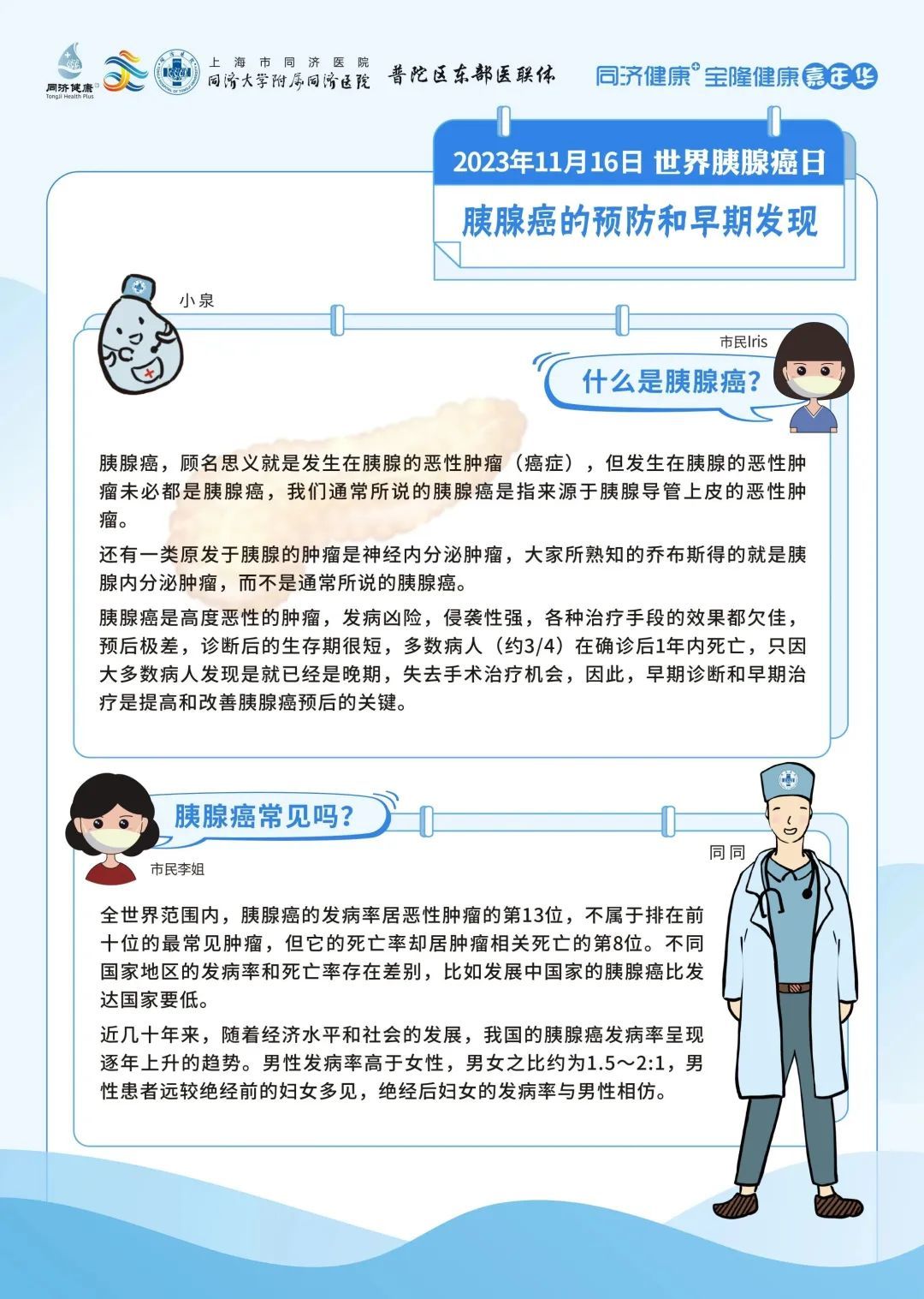 同济大学附属同济医院将在2023年11月16日上午9:00进行【世界胰腺癌日】科普直播。来自胰腺和代谢外科中心、肿瘤内科、普通外科以及消化内科的6位专家将从不同的角度科普胰腺癌相关的防治。