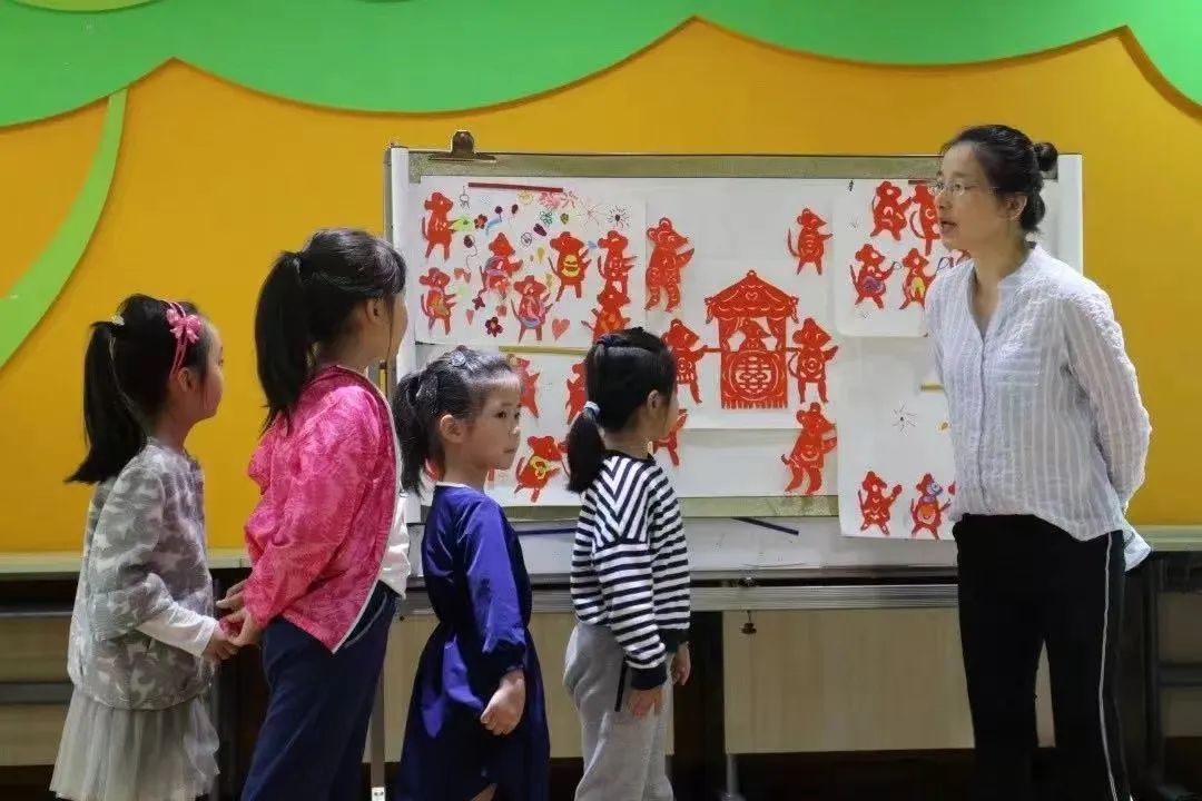 作为上海唯一一家以撕纸为教学特色的幼儿园,新剑幼儿园自2012年引入这一传统手工艺,至今已11年,目前15个大、中、小班级全面普及该项非遗课程。副园长时佩蓉更是师承上海市非物质文化遗产海派撕纸代表性传承人华兴富,于今年成立“时佩蓉灵动撕纸工匠创新工作室”,致力在幼儿教学中传承发展撕纸艺术。