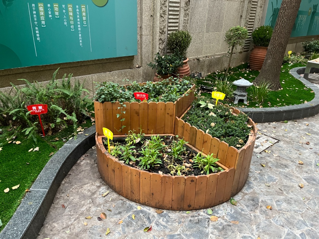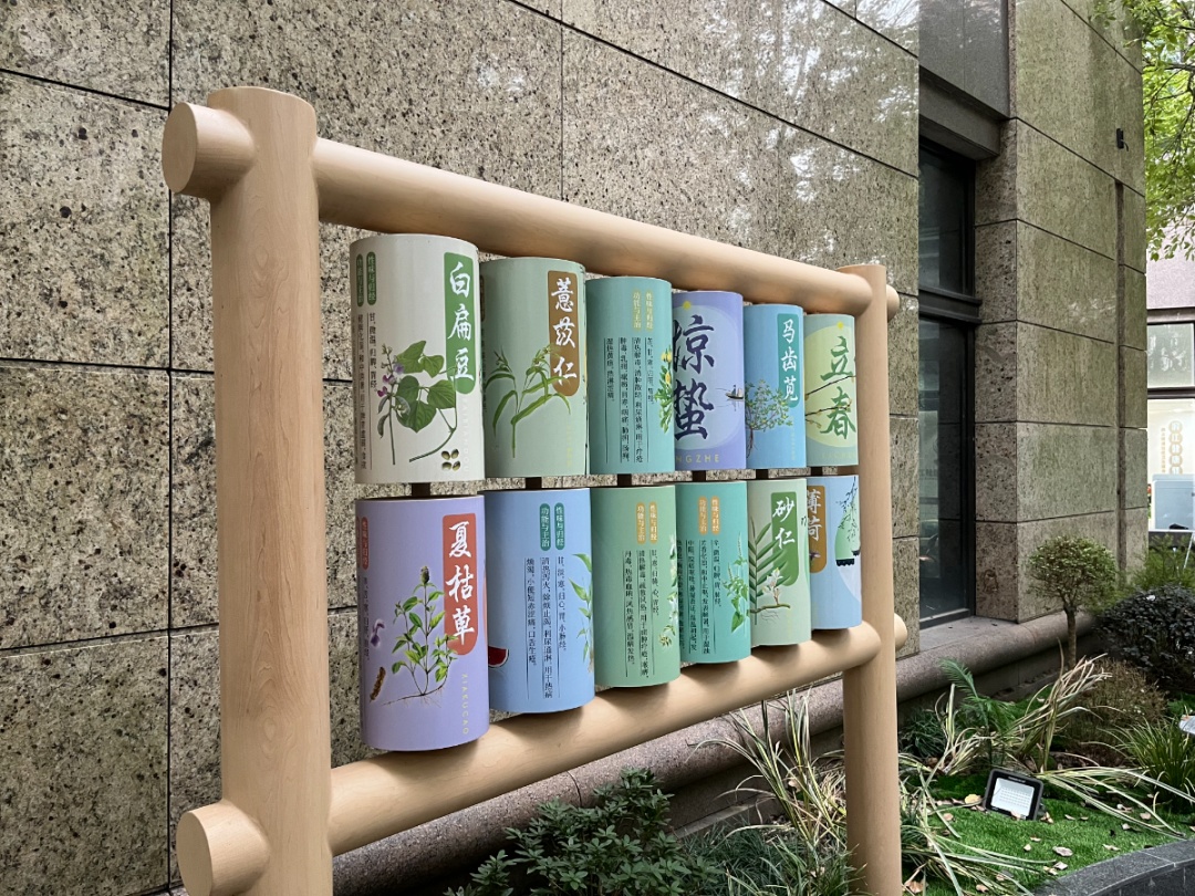 在滨江服务站外的小花圃中,放置有各个节气的养生食材,花圃中也种植了一些绿意盎然的中草药,用以向居民朋友们科普宣传,宜景又宜情。
