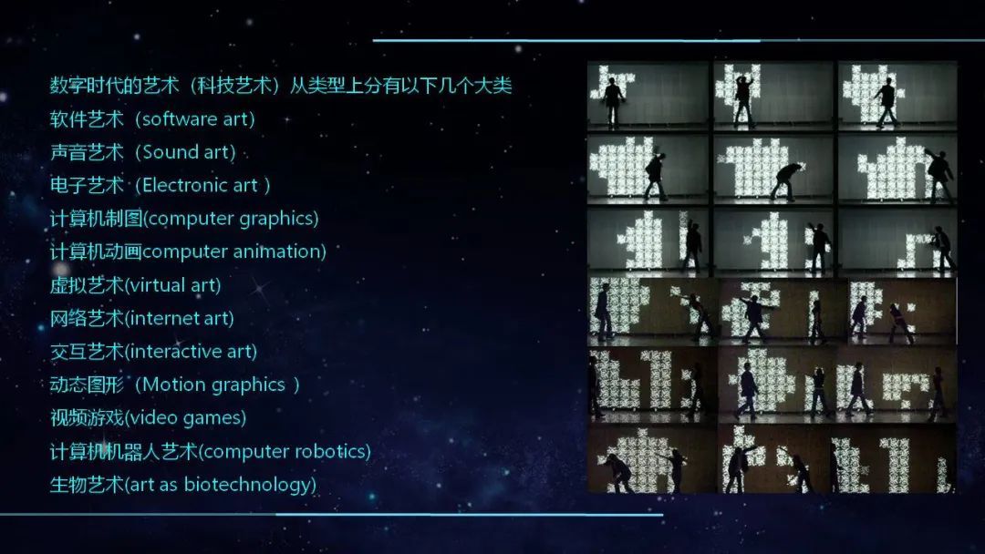 数字艺术通过声、光、电产生交互、交换、社会参与和角色转换强调了一种实时出现的新科技和艺术情感交融文化实践形态。