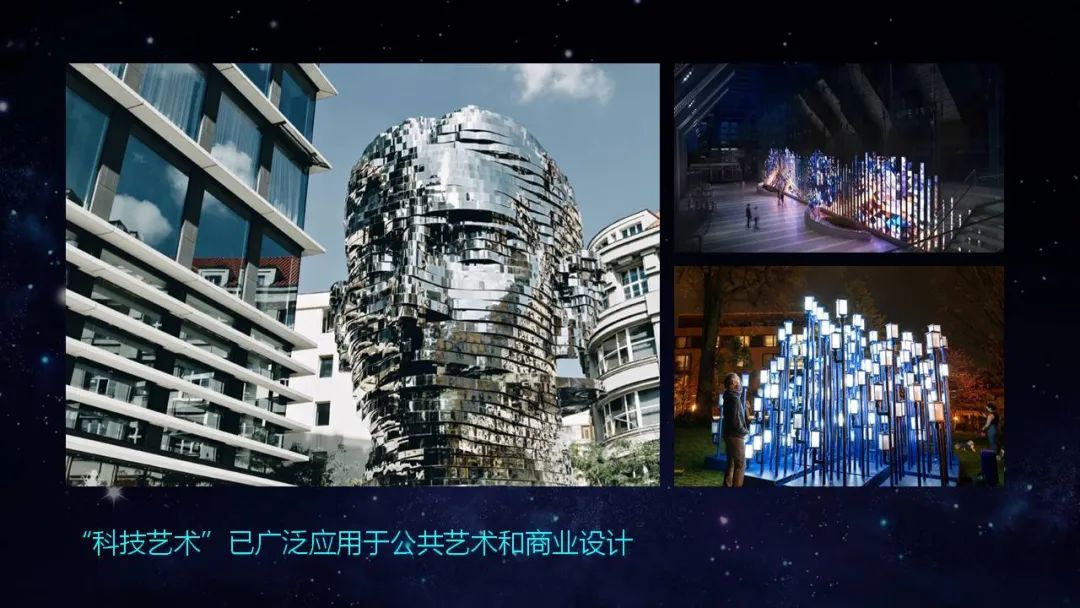 科技艺术是围绕着以数字媒体技术为主体的高新科技创作的艺术,是通过不断更新的数字技术来创作的艺术和设计作品,是对以往的传统艺术特征的更新和发展,形成数字时代特有的艺术表现样式。“科技艺术”已广泛应用于公共艺术和商业设计。