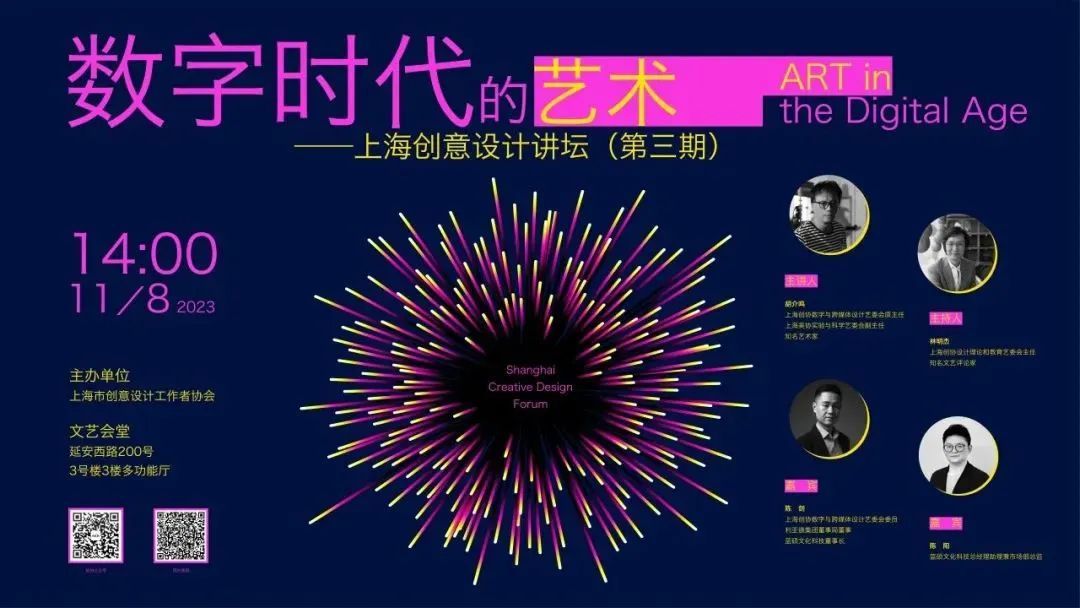 近日,由上海市创意设计工作者协会主办的“上海创意设计讲坛”第三期“数字时代的艺术”在上海文艺会堂举办。此次活动由上海市创意设计工作者协会理论和教育艺委会主任林明杰主持,上海市创意设计工作者协会数字与跨媒体设计艺委会原主任、上海美术家协会实验与科学艺委会副主任胡介鸣担任主讲人,蓝硕文化科技总经理助理兼市场部总监陈阳为对话嘉宾。讲坛围绕“数字时代的艺术”主题展开,讲述科学技术更迭带来的艺术发生可能性,现今的数字艺术有多少种类,对当下数字艺术的现状做一番样本化的解析。