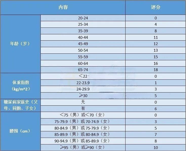 中国糖尿病风险评分表