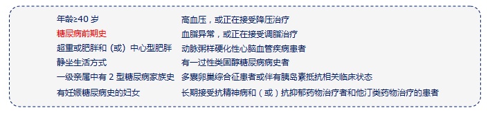 成年糖尿病高危人群的定义为具有以下任一个及以上高危因素者: