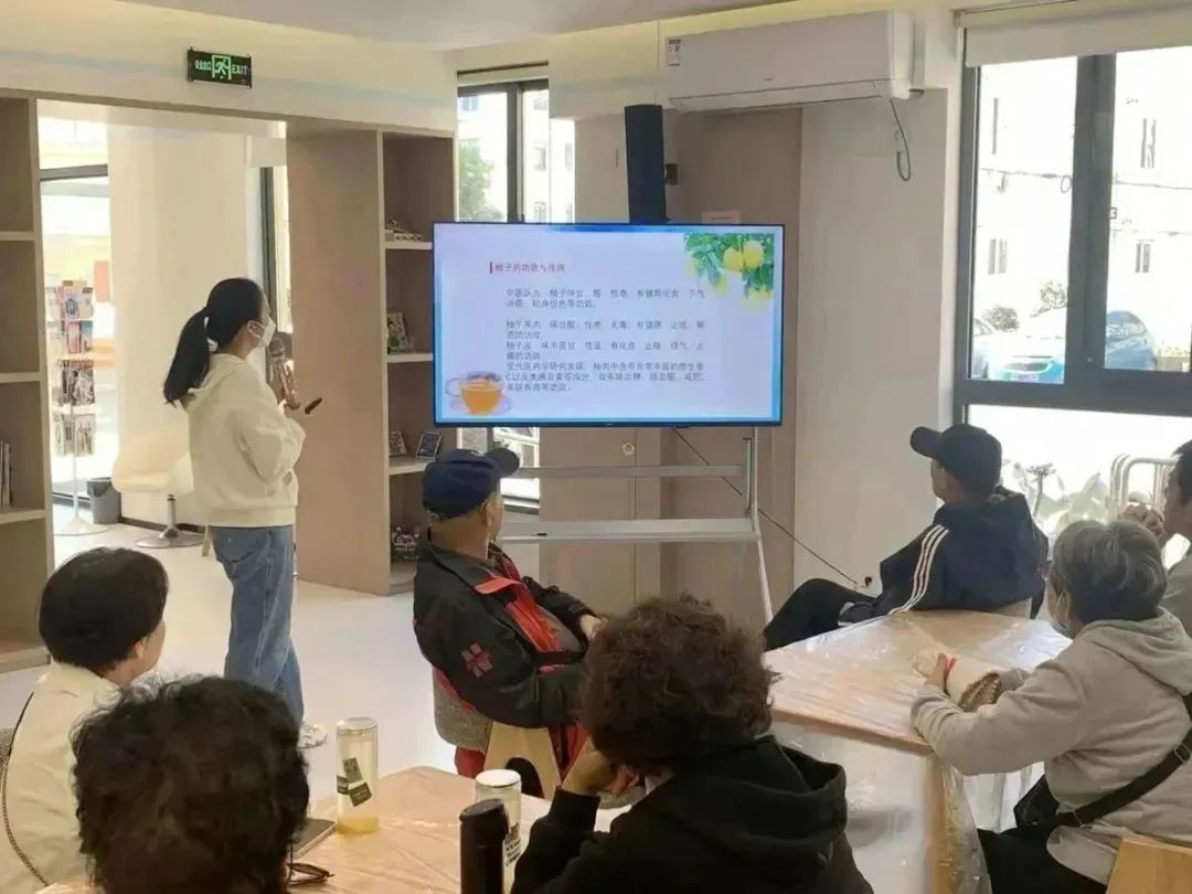 活动开始,社工先为大家介绍了柚子的功效和作用,柚肉中含有非常丰富的维生素C以及类胰岛素等成分,对糖尿病患者非常友好。大家一边喝着温热的蜂蜜柚子茶、吃着红心蜜柚,一边听社工讲解蜂蜜柚子茶的制作方法。