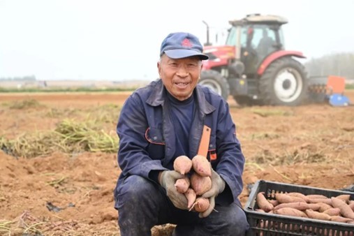 在桃园镇潘庄村紫薯种植基地,伴随着机械轰鸣声,一垄垄体态饱满的紫薯破土而出。村民正将紫薯从藤苗上摘下,就地分拣、装箱,动作娴熟,手脚利落。此次种植的紫薯亩产约4500斤,预计总收益达45万元,村集体增收5万元。