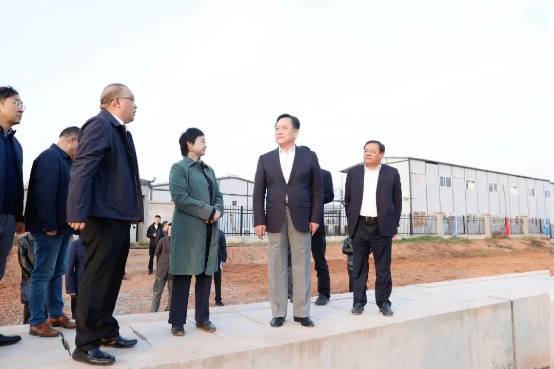 程向民一行首先来到石湖荡货场,听取项目负责人关于工程概况、铺轨基地和分区情况的介绍,并深入施工现场,详细了解当前项目规划落实情况与施工进度。针对规划建设过程中遇到的一些难题,程向民现场协调有关部门,就具体问题开展现场办公,推动各部门与施工建设单位形成合力,以实际举措携手推进松江枢纽高质量建设。