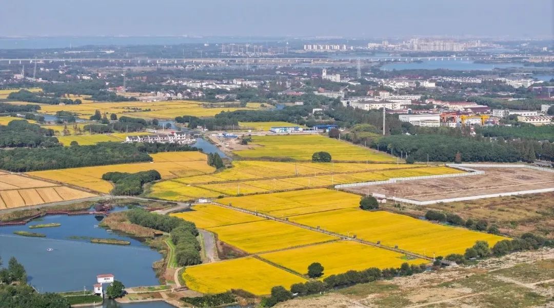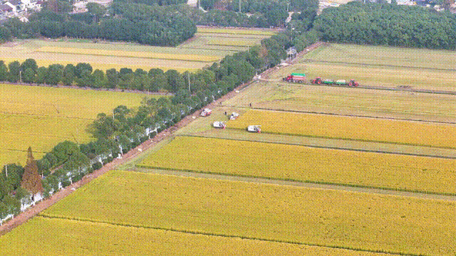 金泽的大地上,处处洋溢着丰收的喜悦。一株株成熟的稻穗随风摇曳,沉甸甸稻穗的摩挲声、农人与游客的欢笑声、收割机的隆隆声,形成一曲曲欢乐的交响曲……