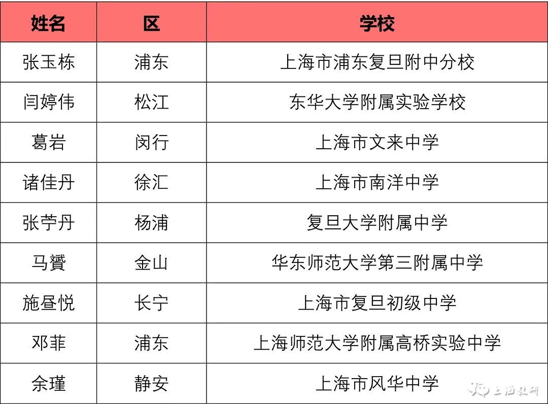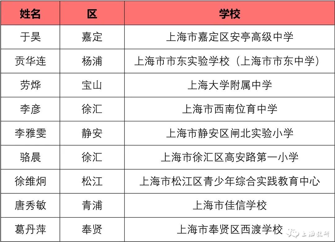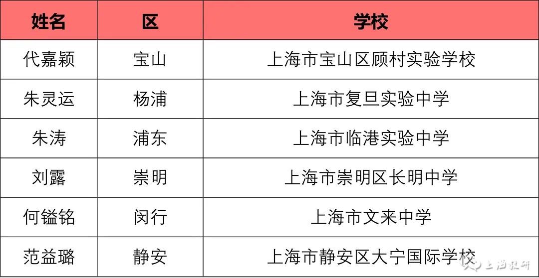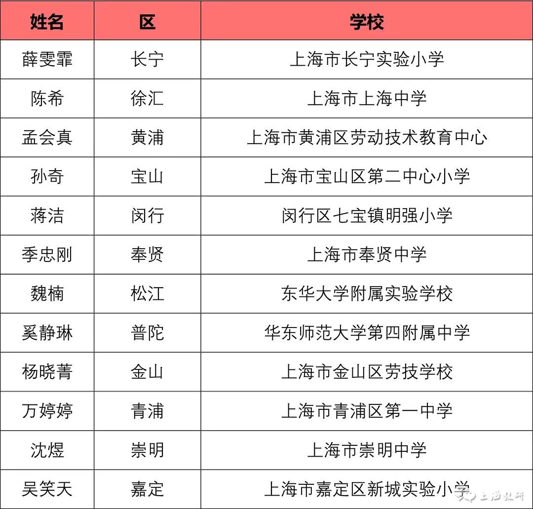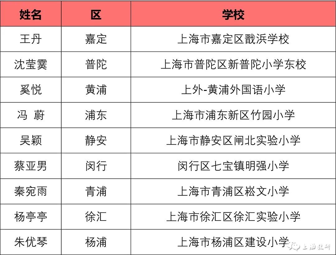由上海市中小学幼儿教师奖励基金会等联合举办,上海市教师教育学院(上海市教育委员会教学教研室)负责具体实施的“2023年上海市中小学中青年教师教学比赛”,于10月9日至10月27日开展了相关工作。 经基层推荐、专家评审、学科组讨论、总评委会审定,王丹等57名教师为一等奖人选,王立威等128名教师为二等奖人选,王志刚等43名教师为三等奖人选。 如有异议,请在2023年11月15日至22日公示期间,向上海市基础教育“三项比赛”活动办公室提出书面意见,并签署真实姓名。联系地址:陕西北路500号2505室;邮编:200041;传真:62179565。
