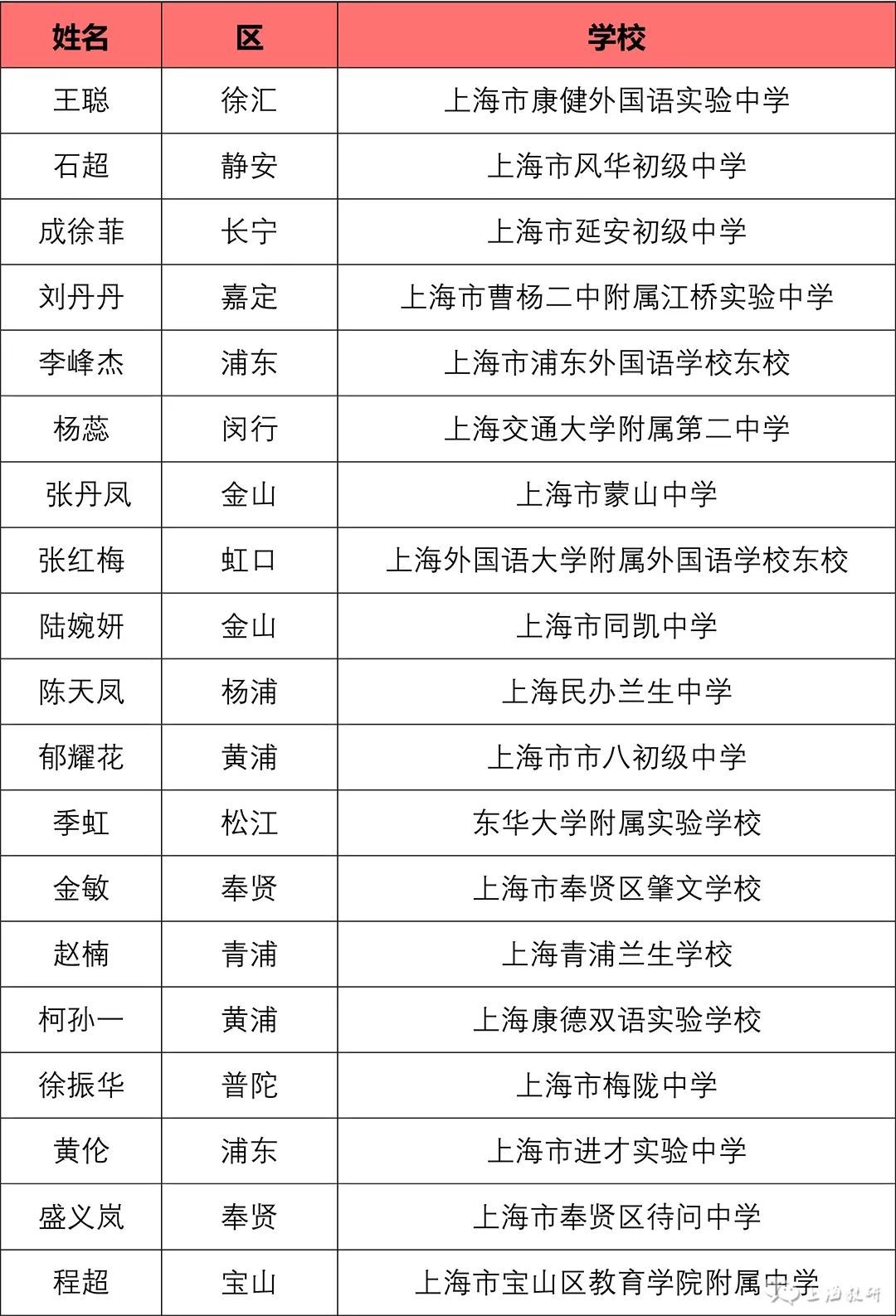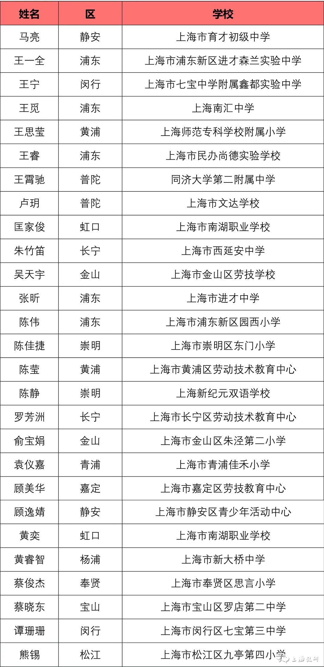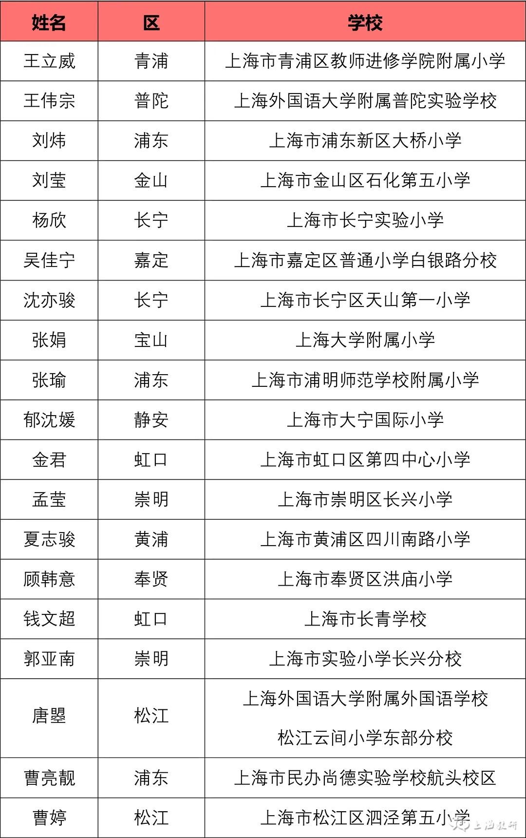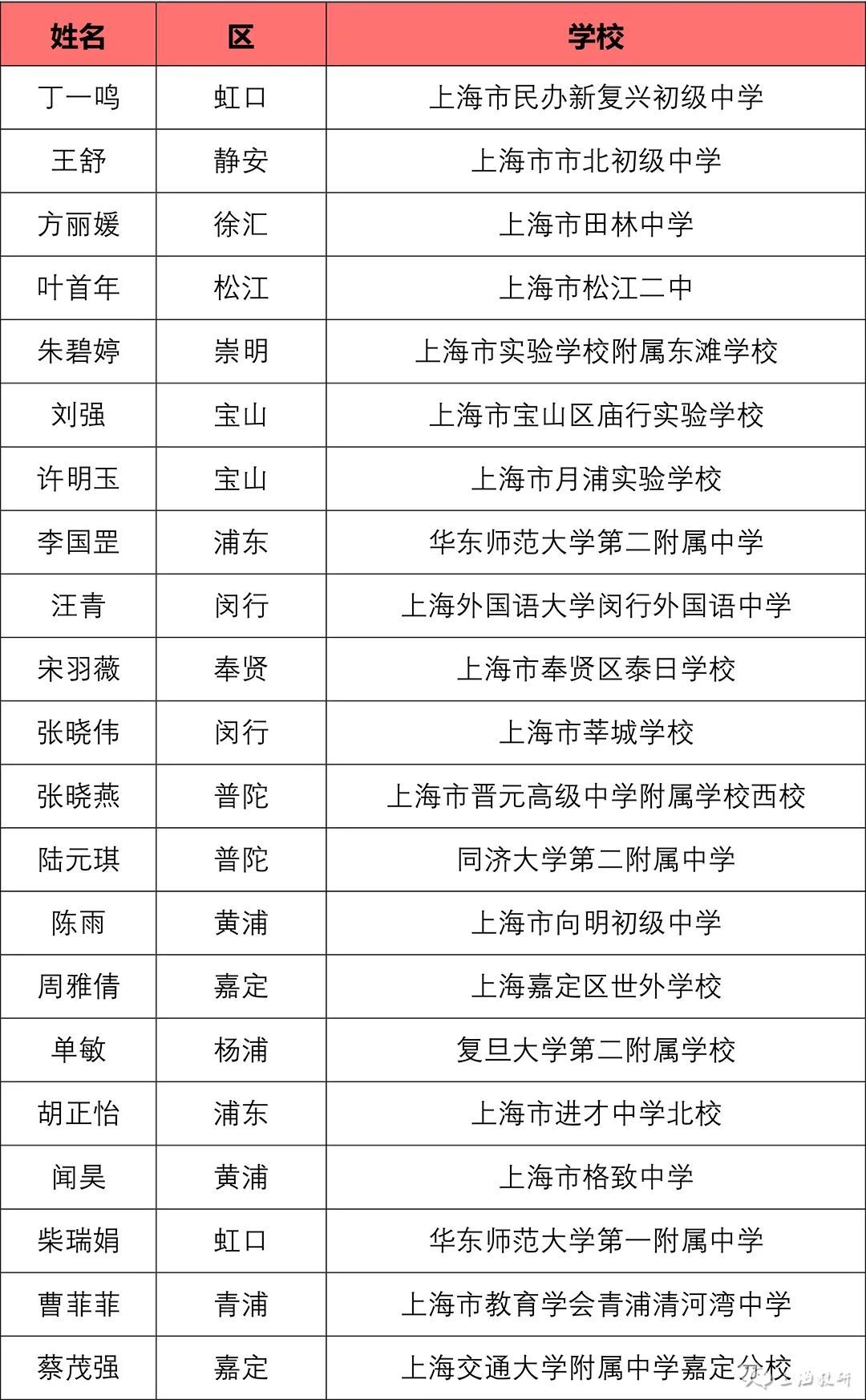 由上海市中小学幼儿教师奖励基金会等联合举办,上海市教师教育学院(上海市教育委员会教学教研室)负责具体实施的“2023年上海市中小学中青年教师教学比赛”,于10月9日至10月27日开展了相关工作。 经基层推荐、专家评审、学科组讨论、总评委会审定,王丹等57名教师为一等奖人选,王立威等128名教师为二等奖人选,王志刚等43名教师为三等奖人选。 如有异议,请在2023年11月15日至22日公示期间,向上海市基础教育“三项比赛”活动办公室提出书面意见,并签署真实姓名。联系地址:陕西北路500号2505室;邮编:200041;传真:62179565。