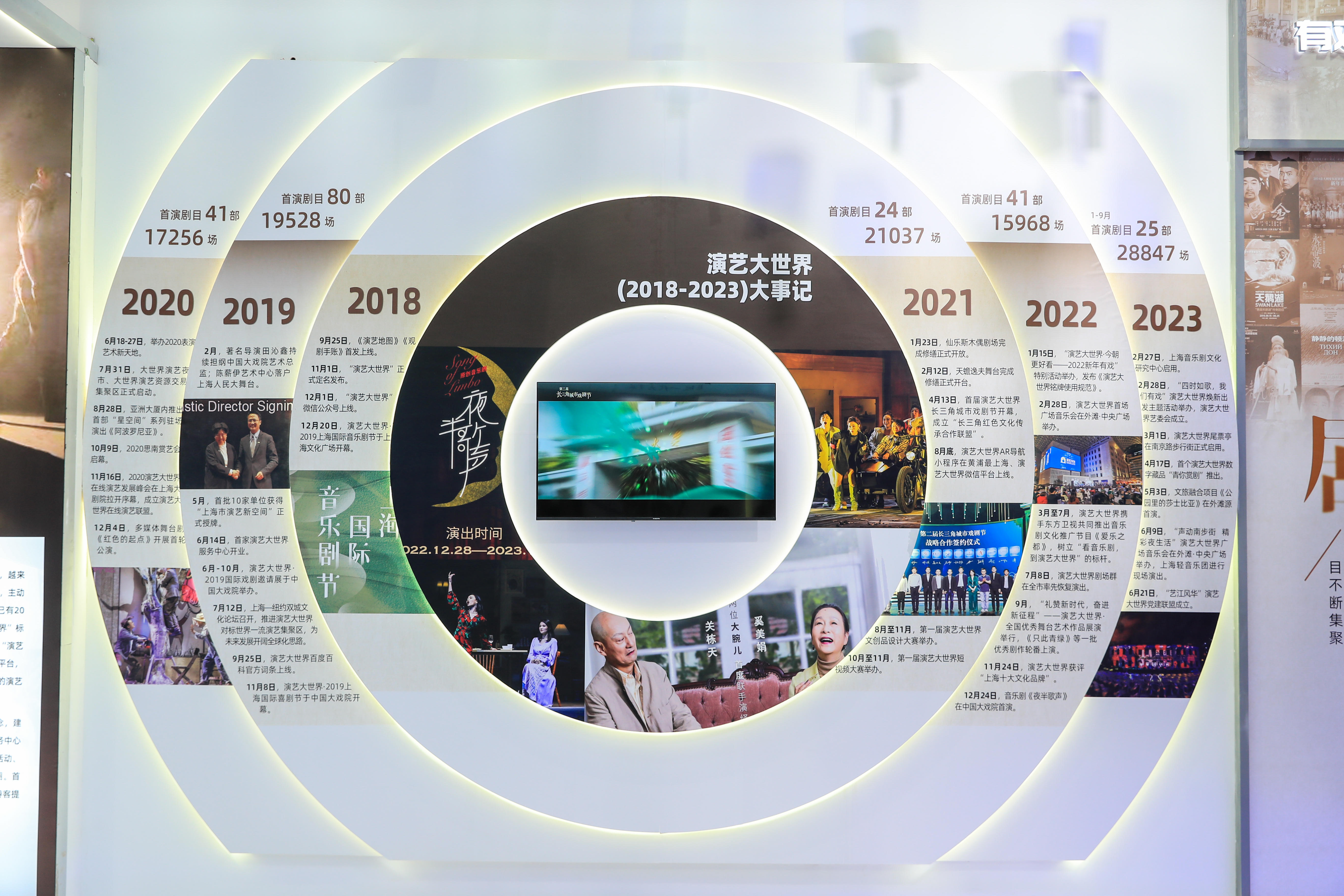展板墙上,演艺大世界这5年的大事记清晰可见。5年来,演艺大世界完成了超十万场演出,打造了超两百部首演剧目。从“演艺码头”向“演艺源头”“演艺潮头”奋勇迈进的道路上,演艺大世界跬步千里,硕果累累。