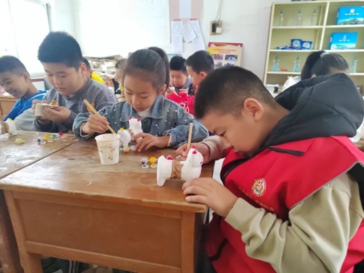 随后,在志愿者的引导下,孩子们开始为手中的泥老虎坯上色,小老虎慢慢的发生着变化,有的小朋友自由发挥,在小老虎上画出自己喜欢色条纹和配色,也有的小朋友严格按着传统的图案配色制作的自己的作品。一笔一划,认真勾勒着自己的作品。不一会儿,一个个颜色夸张大胆、鲜艳漂亮,威风凛凛、神气活现的泥老虎便呈现在大家眼前。
