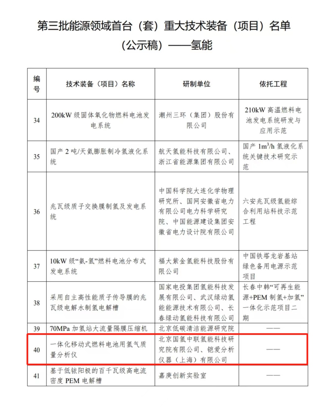 近日,国家能源局公布第三批能源领域首台(套)重大技术装备(项目)名单,嘉定企业参与研发的“一体化移动式燃料电池用氢气质量分析仪”名列其中。