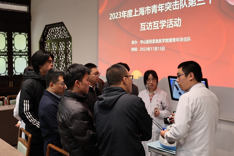 11月13日上午,华山医院花园内,一辆印有“国家紧急医学救援队”的卡车和一顶印有“中国卫生”的大帐篷格外引人注目。当日,华山医院紧急医学救援青年突击队承办2023年度上海市青年突击队第三十一组互学互访活动,接待组内来自各行各业的12家单位、共19名青年突击队队长及骨干青年。活动由华山医院团委书记、紧急医学救援青年突击队队长茅善华主持。