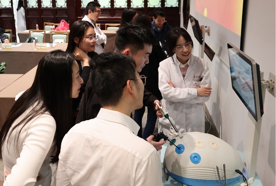 花园大厅里,普外科杨璐宇主治医师和运动医学科冯思嘉医师指导青年们在模拟腹腔镜下进行外科操作,青年们感叹到,做外科医生真的需要“鹰的眼睛、狮子的心和女人的手啊”。