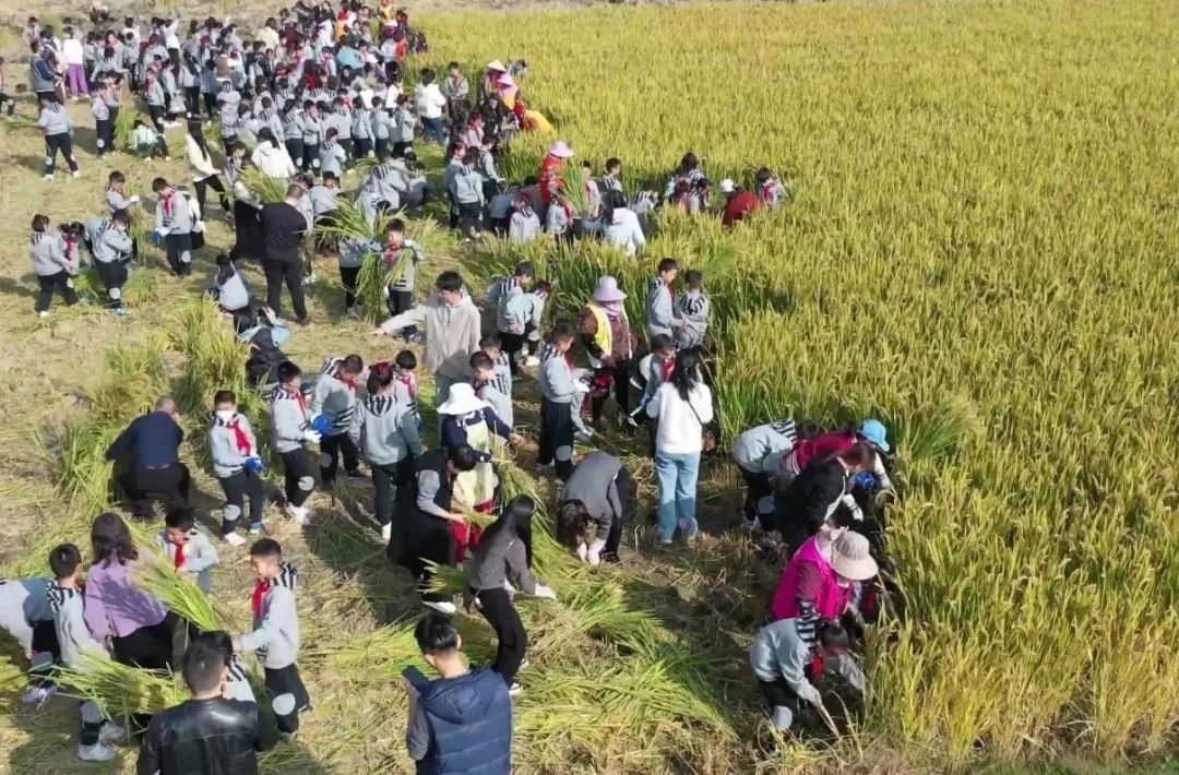 日前,上海金山区世外学校的学生在金山区廊下镇万亩粮田里举行了以“尝秋收快乐 知耕耘不易”为主题的秋收活动。通过亲身体验割稻、脱粒和捡稻穗等劳动,学生们深刻感受到了劳动的辛苦和收获的喜悦,大家在体验中学习知识,在活动中增长技能。 来到廊下万亩粮田,四处稻谷金黄。上海金山区世外学校的老师和村民们现场教学,把收割动作要领拆分讲解后,学生们戴上厚厚的手套,拿起镰刀接力收割稻谷。不一会儿,学生们就纷纷抱着收获成果走出稻田,现场一片欢乐繁忙的景象。 学生 彭之玥: 很有趣,很好玩!我学到了很多技巧! 学生 肖传胤: 通过这次活动,我体会到了“谁知盘中餐,粒粒皆辛苦”,感受到了农民伯伯们的辛苦,所以我们一定要珍惜粮食。 随后,捆稻杆、拾麦穗、脱粒等农作活动也让学生们乐在其中。在金色的稻田里,学生们不仅体验了生态自然的农家劳作,更重要的是,了解了粮食从田地到餐桌的过程,体会到了收获的艰辛和不易。 学生家长 董虹君: 我觉得这次活动特别有意义,孩子的协作能力、沟通能力都得到了锻炼,还学到了收割稻谷的技能。孩子也明白了粮食的来之不易,要学会珍惜的道理。 此外,学校还将树叶贴画、稻田音乐会、稻田野餐等一系列艺术活动融入其中,让学生们沉浸式探寻科学奥秘,进行艺术创作与学习。 教师 张曹奎: 此次,我们把稻田做为劳动教育的场所,也是希望能让学生们感受到劳动创造的价值。 记者 | 陈天艺 王佩永 编辑 | 姚凯欣(实习) 责编 | 沈彦菲