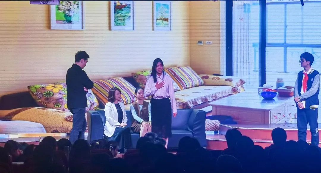 “我长成了你讨厌的模样,日日家校顶撞,貌似气焰嚣张,谁知我心中也有渴望……”音乐剧由学生肖青与导师邰老师之间的误会与矛盾为导火索,在随后的家访中,邰老师和班主任胡老师目睹了肖青与父母争执崩溃的场面,并由此引出了身为双胞胎弟弟的肖青,渴望被关注、被理解的情感需求。通过一段段直指内心世界的对话,横亘在教师与学生、孩子与家长之间的隔阂被破除,跌宕起伏的剧情加上由教师亲自谱曲、作词的抒情音乐,令观众动容,也启人深思。