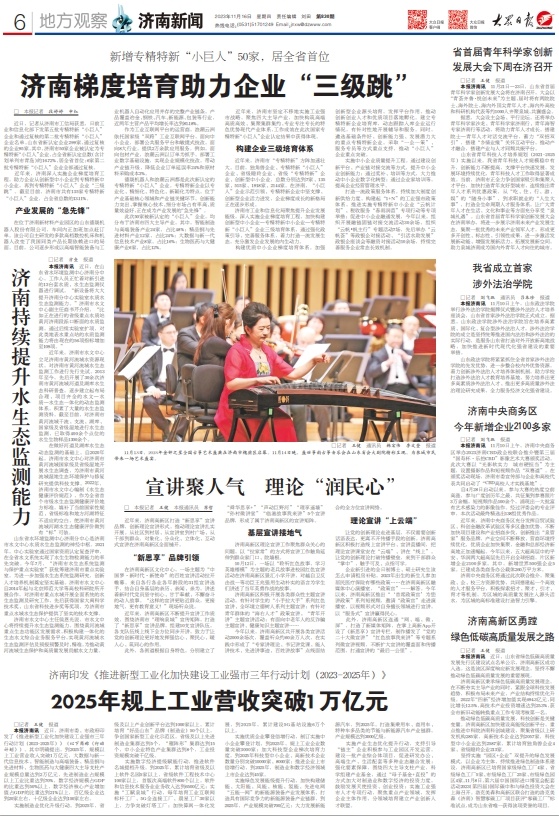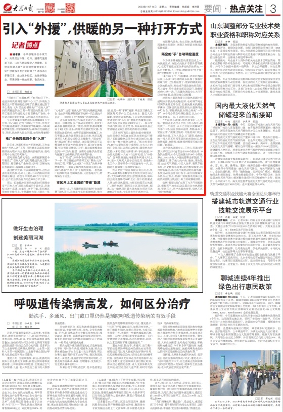 本周,大众日报围绕济南的中心工作在省版推出了《引入“外援”,供暖的另一种打开方式》等报道,在济南版推出了《济南梯度培育助力企业“三级跳”》等重点报道。此外,大众日报还通过新媒体对济南近期的重要工作进行了全方位报道,详情如下: