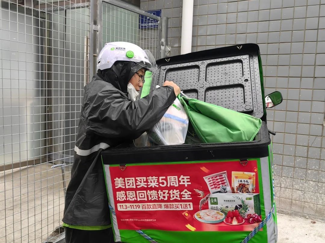 门店负责人表示,为应对周边环境的影响,美团也是落实好对骑手的保障,考虑到订单高峰期一般在16点以后,天气温度较冷,美团买菜为配送小哥提供了抗寒保暖冲锋衣等装备,切实做好对外卖员的保障工作。