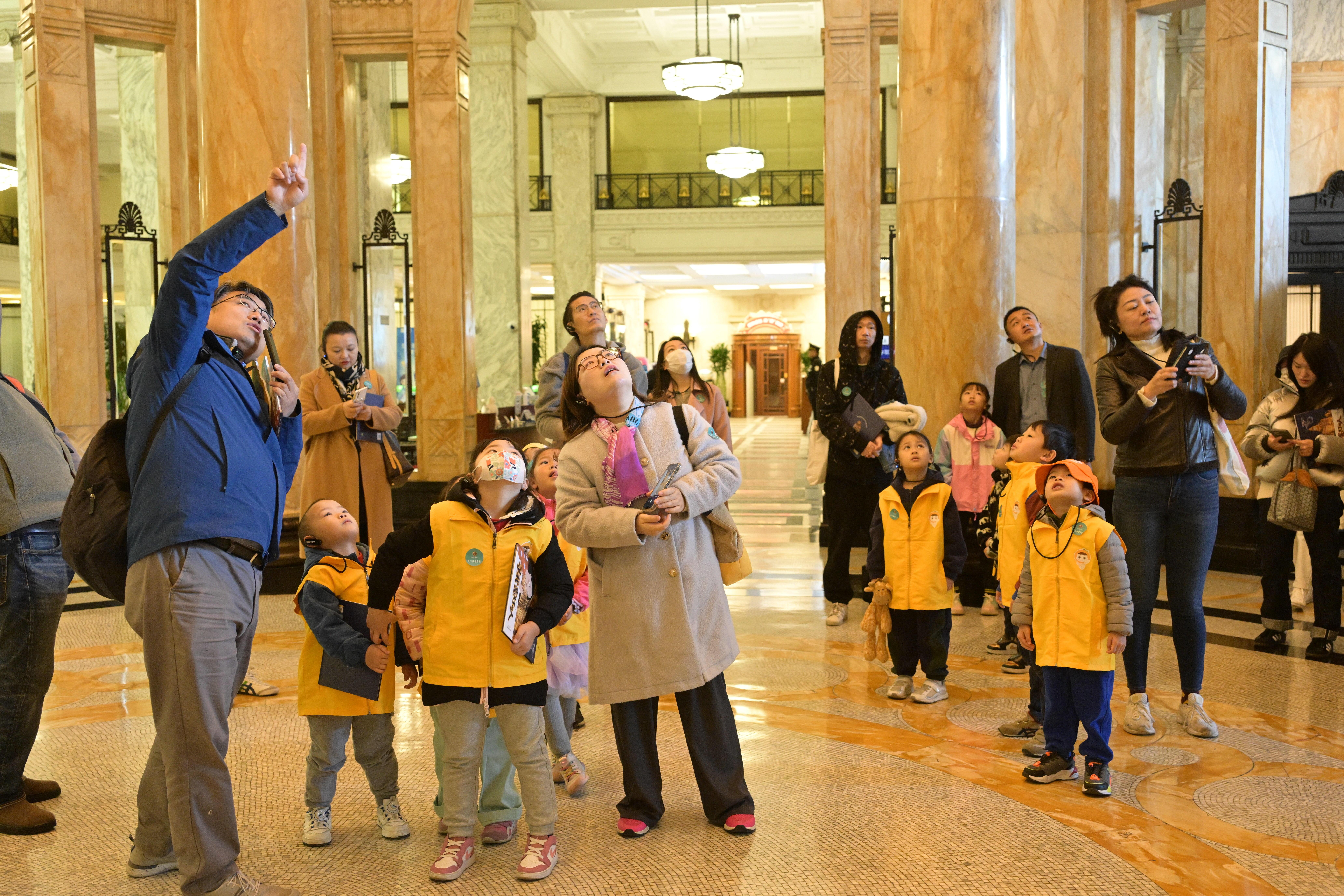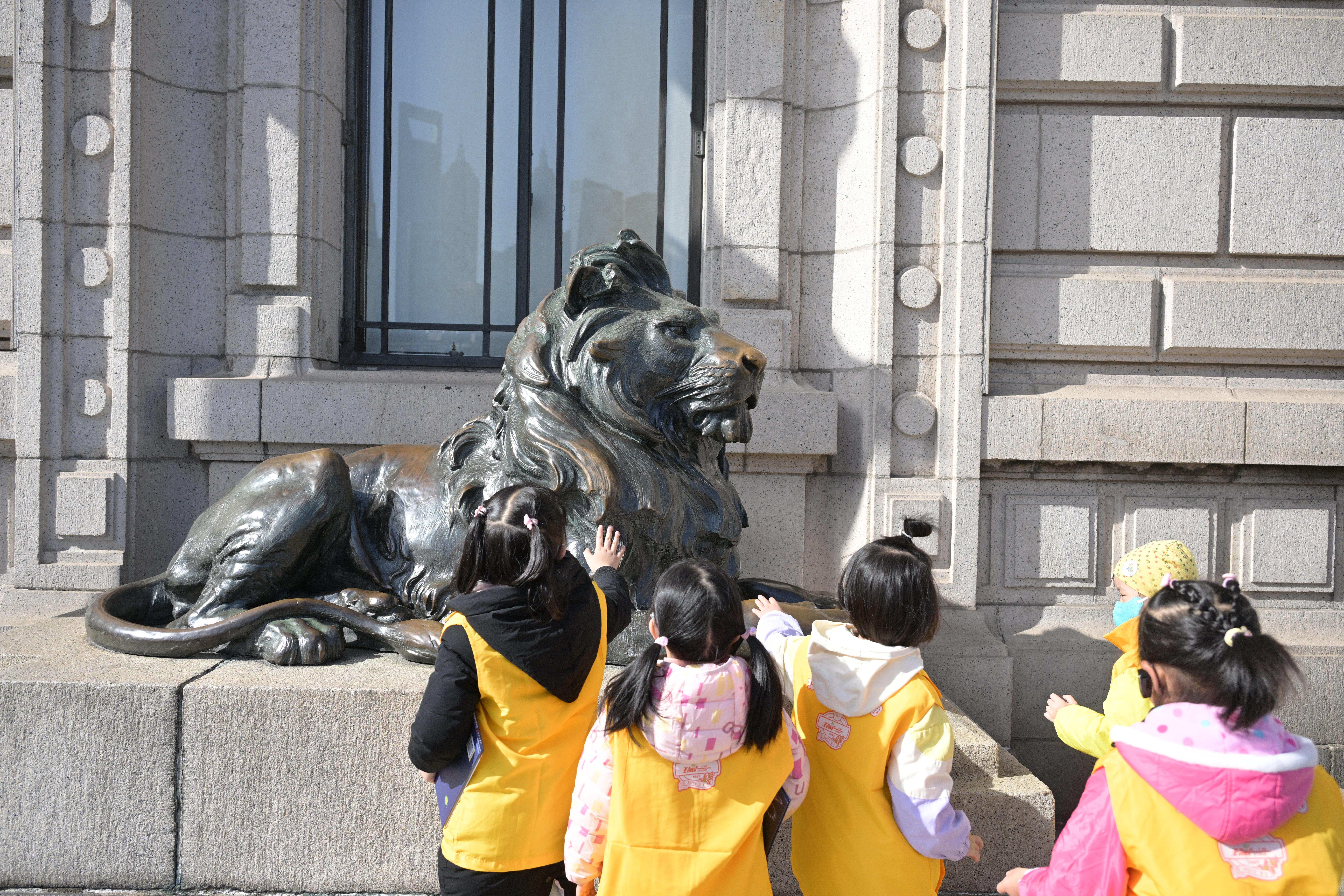 沿着外滩万国建筑前,一群来自瑞金一路幼儿园的小朋友,从外滩钟声响起的海关大楼开启寻迹之旅,解密汇丰银行大楼穹顶壁画的故事、找寻中国通商银行大楼的哥特元素,在上海总会大楼探访全市唯一的半弧形老电梯,在外滩信号台里解读航海旗语,看近代外滩变迁史,走近上海文化。