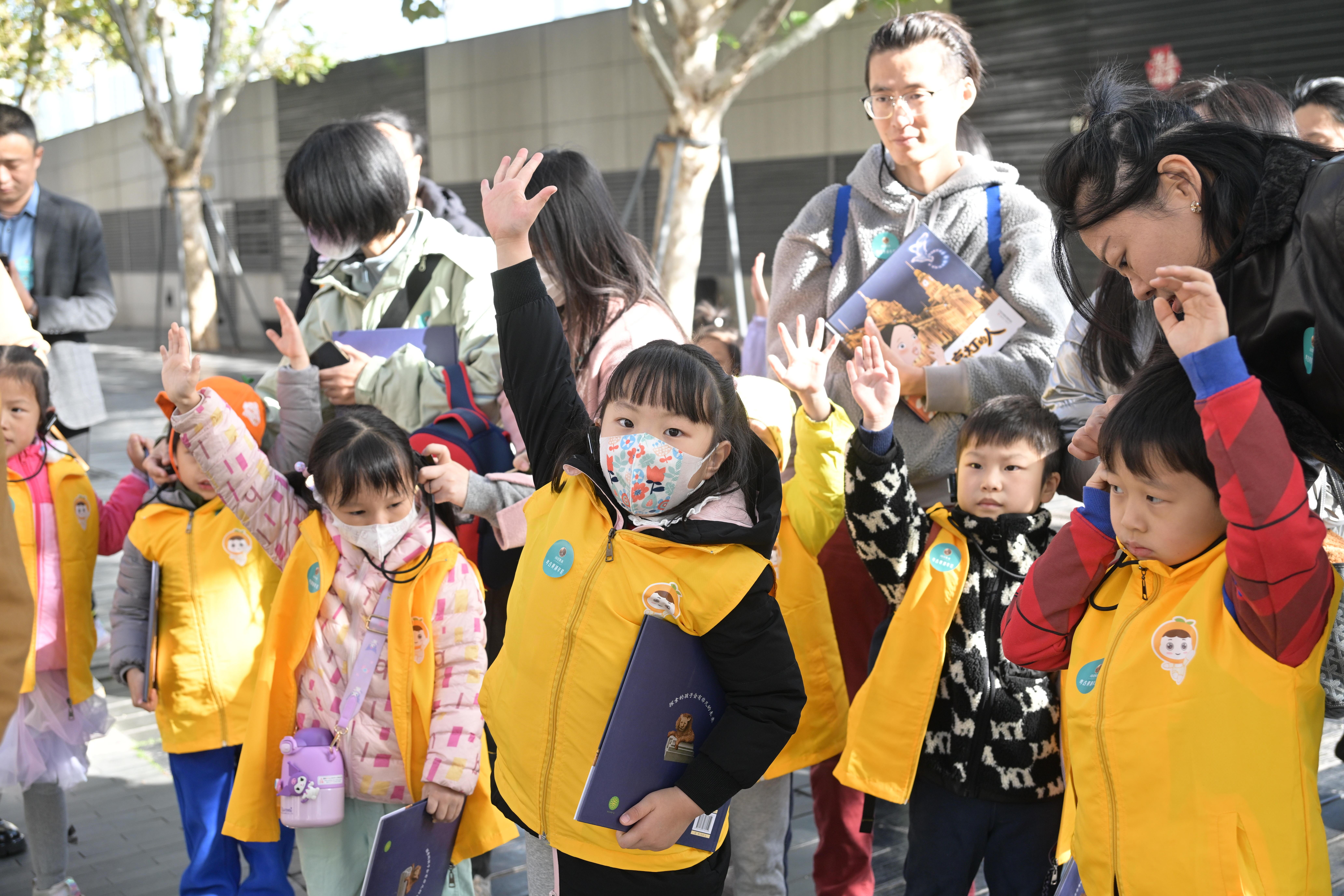 参观全程大约一小时,能让孩子们走出教室体验走读城市的乐趣,讲他们听得懂也愿意听的上海文化故事,一旁陪伴的家长也都很高兴:“也许小孩子还不完全听得懂,但是能让他得到一点点熏陶,也是一种非常好的教育,也给遛娃带来了新思路。”