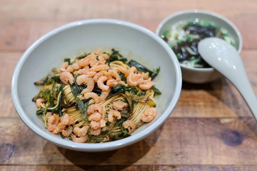 地道的开洋葱油拌面,面条有韧劲又滑爽,开洋鲜美,葱油则是喷喷香。