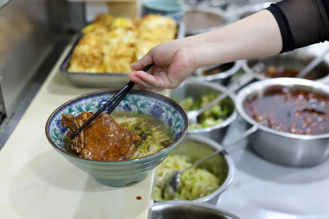 店内11种浇头,单点或者双拼都很不错!无论是招牌的本帮鳝丝面还是泡椒牛蛙面,阿拉都对他们有着独特的情怀。经过旺火爆炒的鳝丝、牛蛙浇头,满噗噗地盖在面条上,老上海面条在面汤的浸泡下,与浇头搭配得相得益彰。