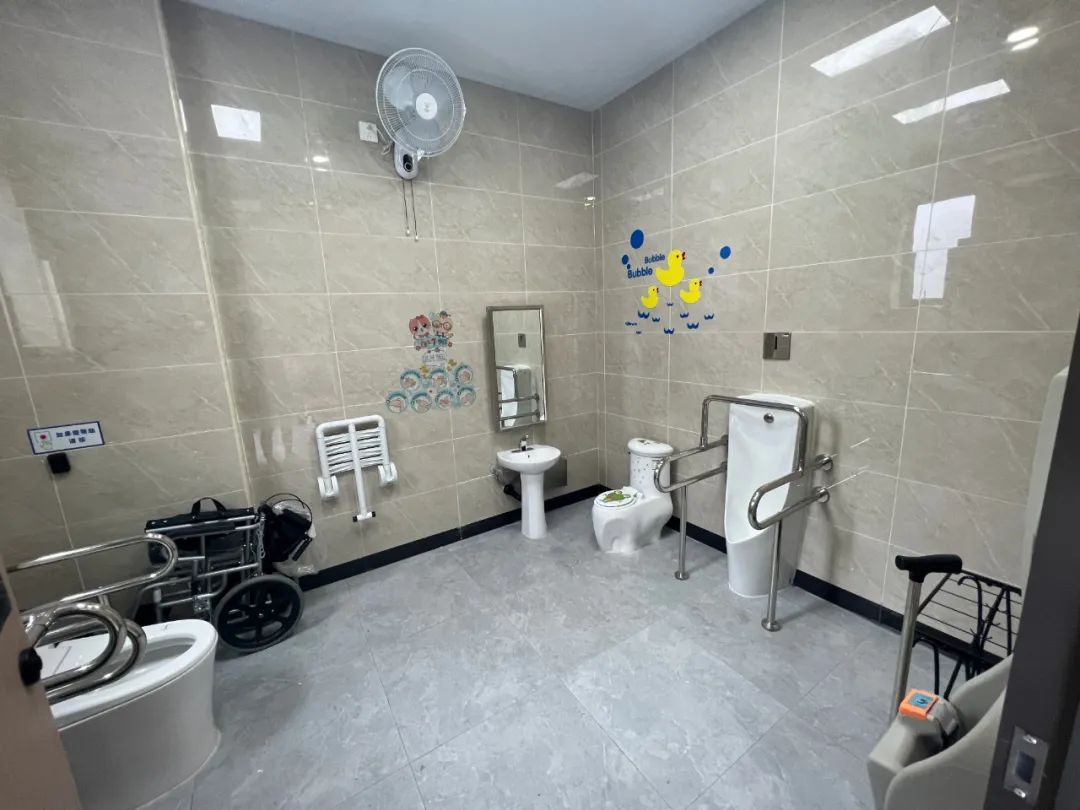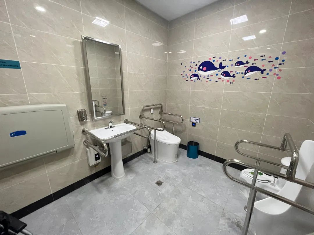 而位于小区附近的金汇豪庭公厕,同样完成了适老化适幼化改造,增加了厕位数量、第三卫生间、无障碍间、无障碍扶手一体化覆盖厕位等,为儿童、老人和腿脚不便的居民提供便利。
